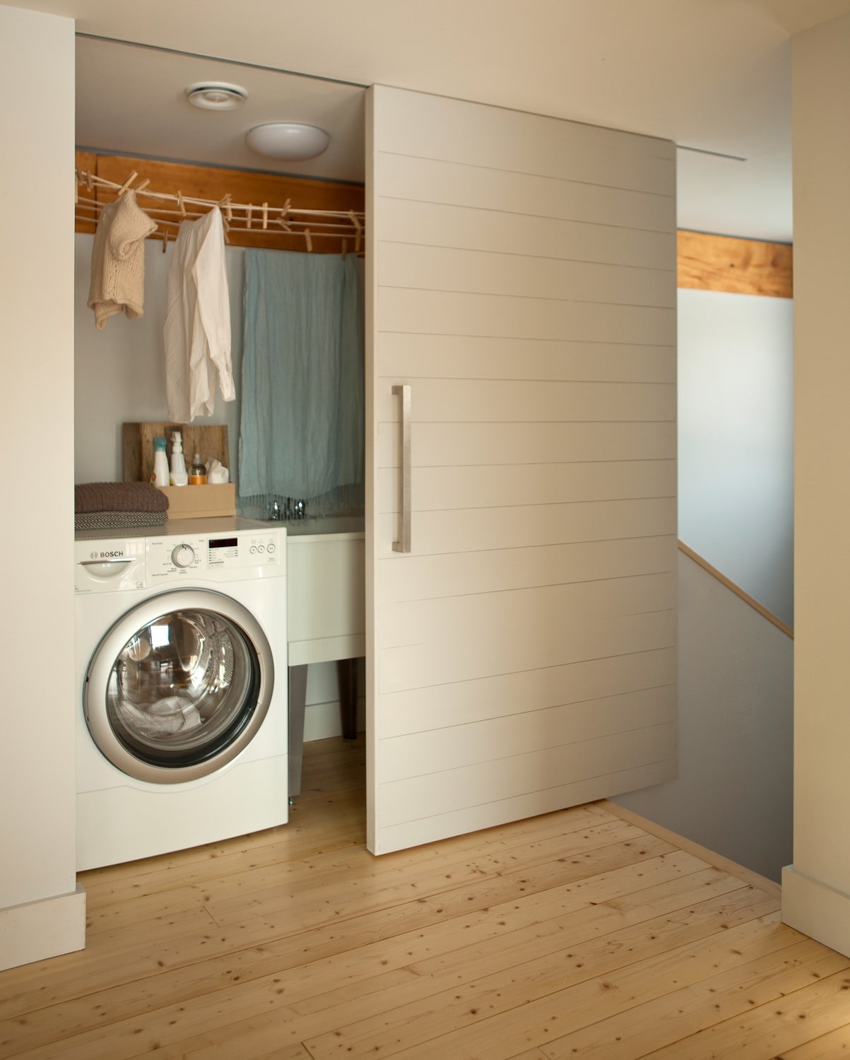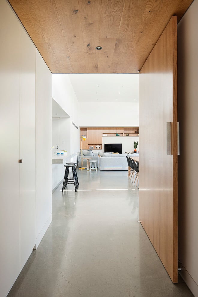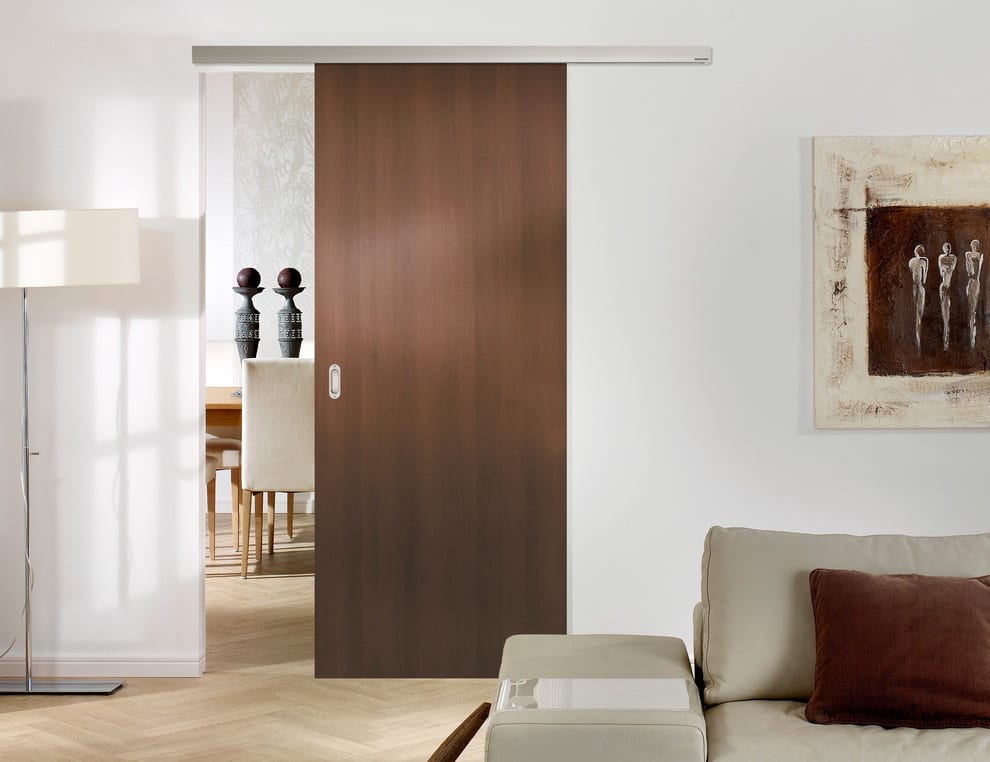 Eles diferem do cupê em que eles têm apenas uma aba. Ele não desliza ao longo da parede, mas se retrai em um slot especial, que é embutido na parede. O espaço é gasto ainda menos, o resultado parece ainda mais estético.