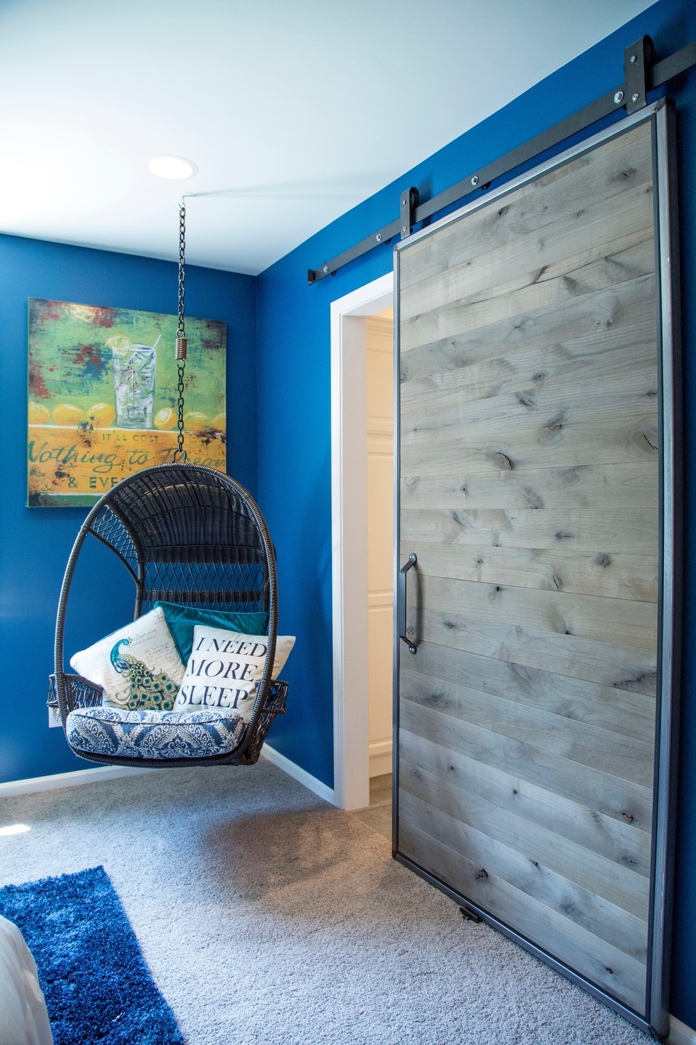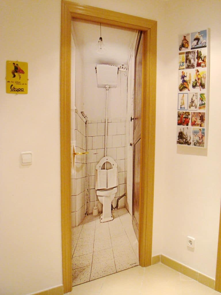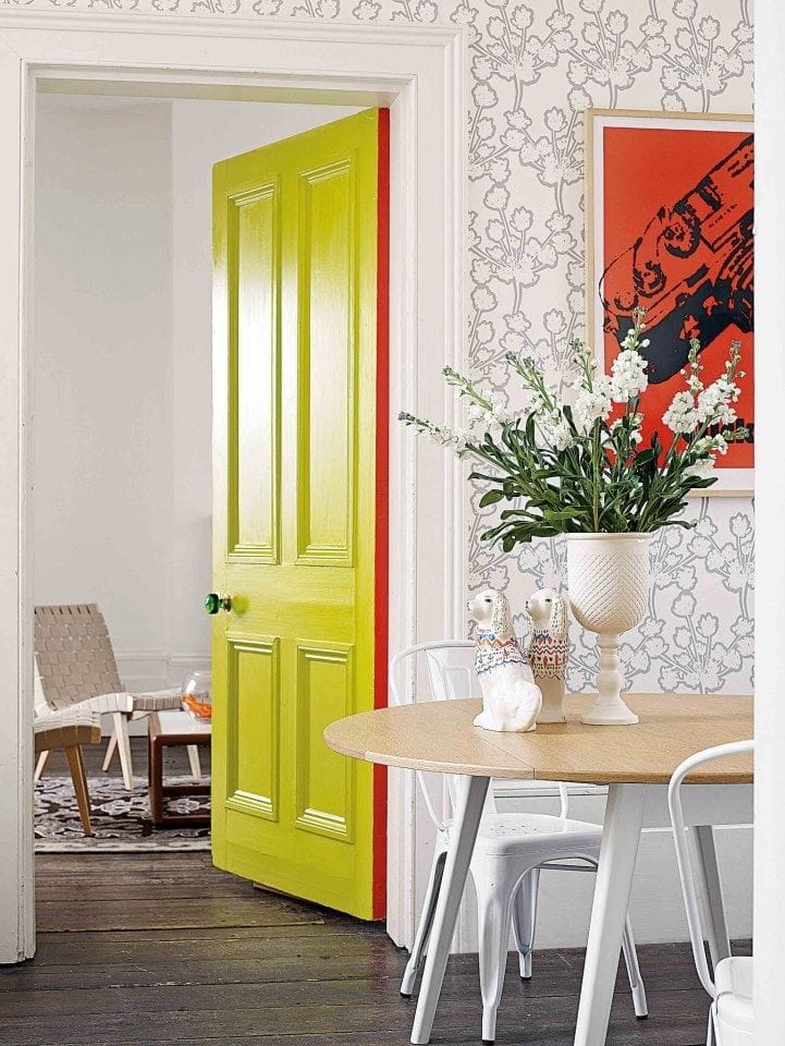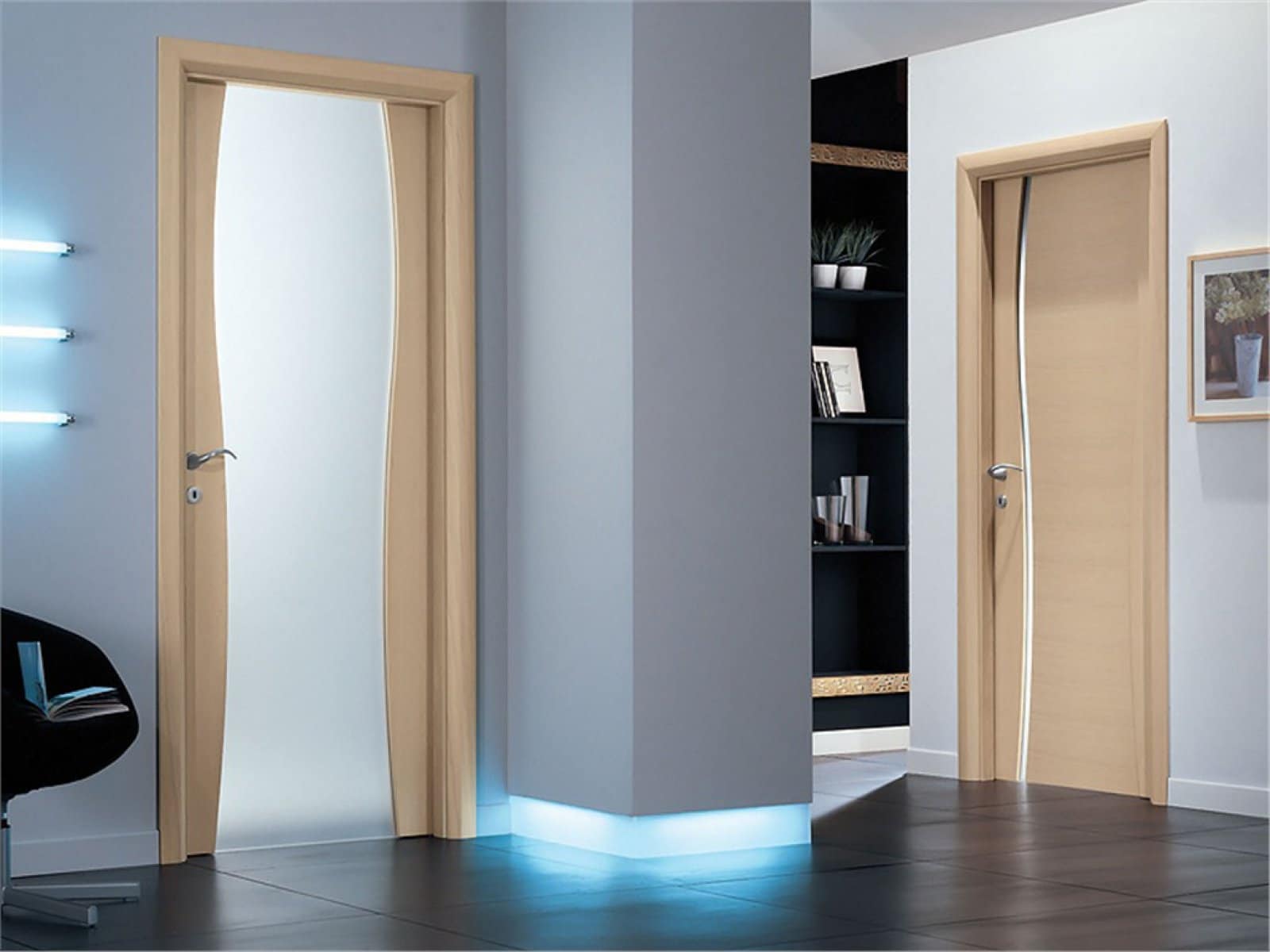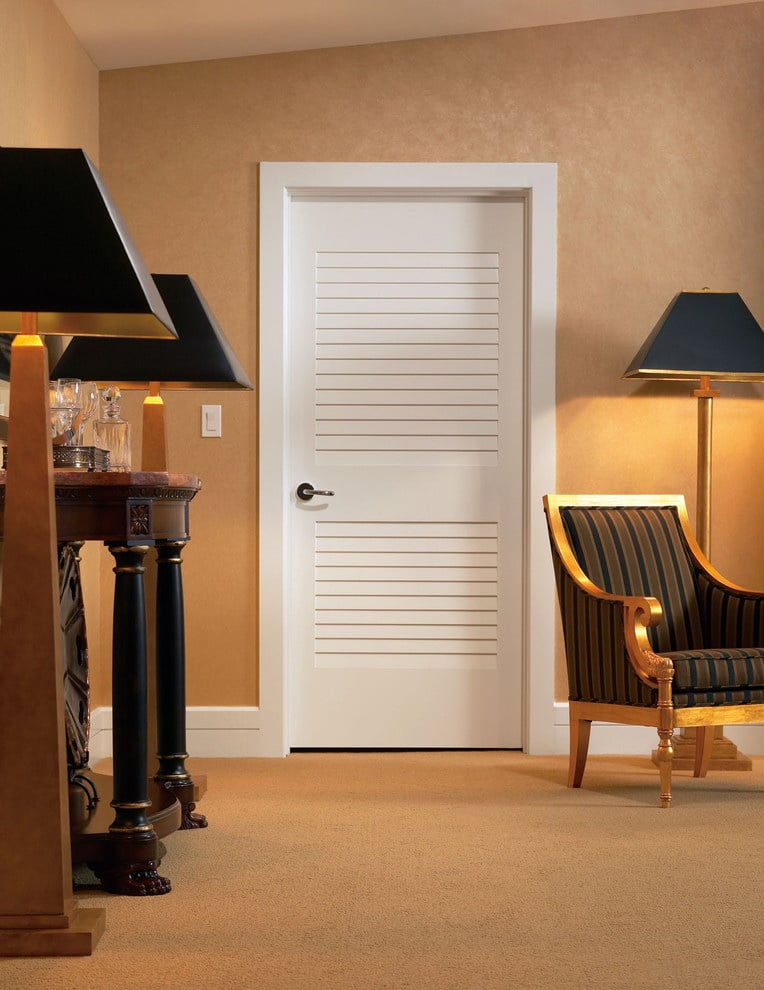 - Ajuste. A porta da mesma cor da parede permite que você complete a sala. Bem adequado se o interior não precisa complementar, apenas o suficiente para não distrair a atenção dele.