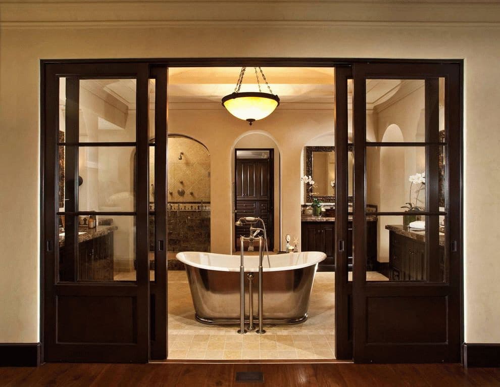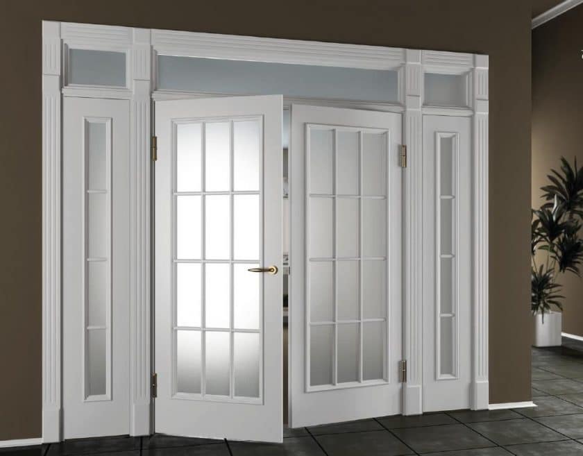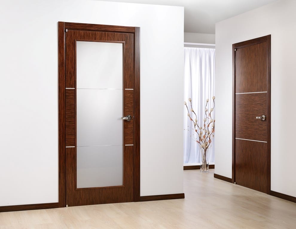 Portas interiores podem ser completamente de vidro ou incluir inserções de vidro. Este material tem várias vantagens: