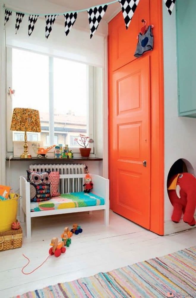 - a variedade de design - ninguém vai te machucar para fazer slats horizontais de qualquer material e pintá-los em qualquer cor (os brilhantes são adequados para criança).