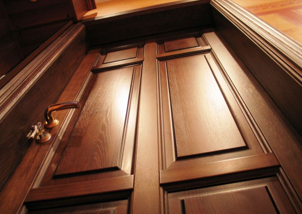Um array sólido parece o mais nobre, mas é caro.Muitas vezes, faz sentido comprar uma porta mais fácil, talvez coberta de verniz. Será parecido com uma árvore, mas as dificuldades com isso serão muito menores.