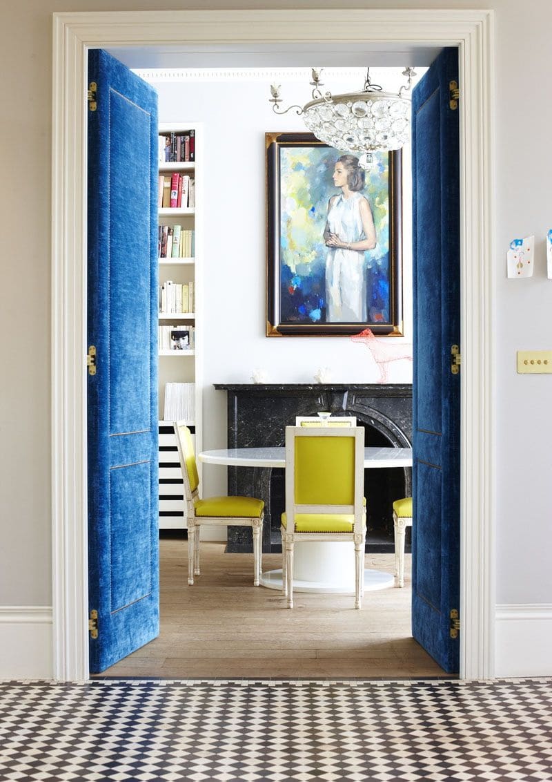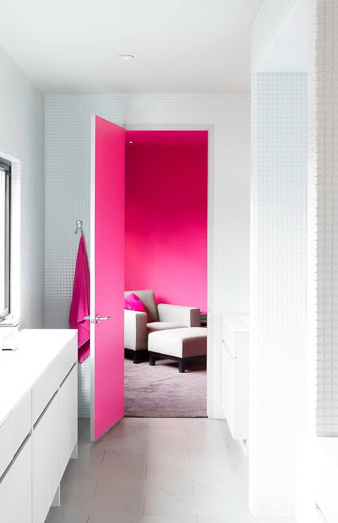 - O contraste. A porta de contraste é uma boa solução onde não há tensão suficiente, onde o interior parece entediante. Deve ser contrastado com por sexo, e para escolher o tom certo, você pode usar a tabela, que é fácil de encontrar na Internet.