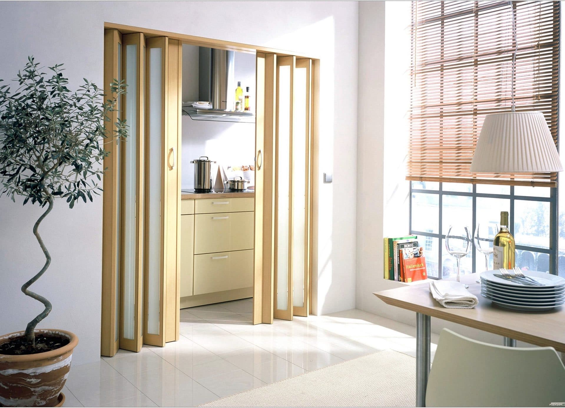 "Acordeão" é uma boa solução para uma casa particular, especialmente se você fizer de um material leve, colorindo-o de acordo. Ela também pode encontrar seu lugar no apartamento, mas terá que fazer um esforço.