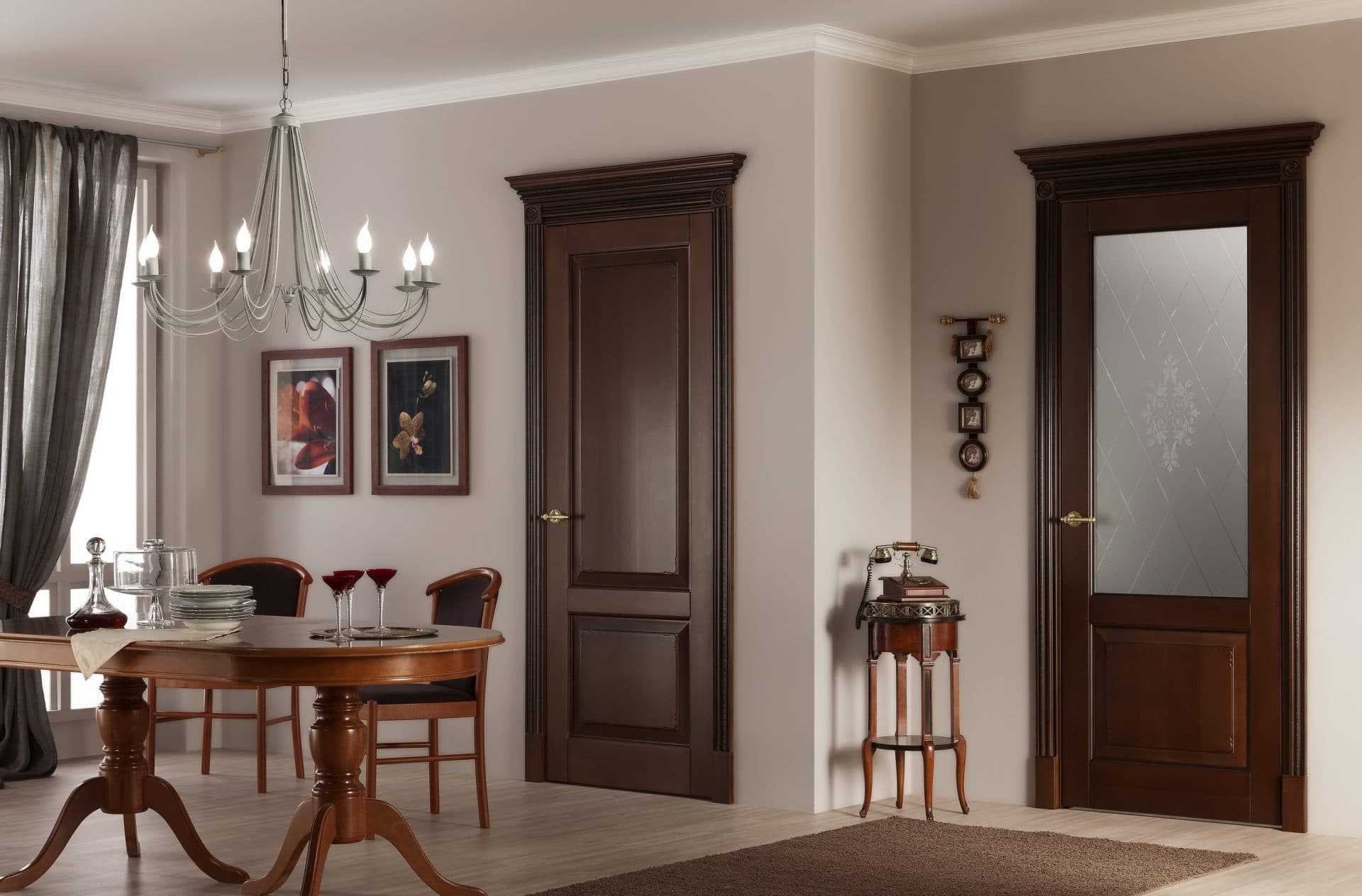 Árvore usado para portas interiores em duas versões - um conjunto sólido, que é complementado por pequenos acessórios, ou o esqueleto para o quadro, no qual materiais mais baratos e mais leves são anexados.