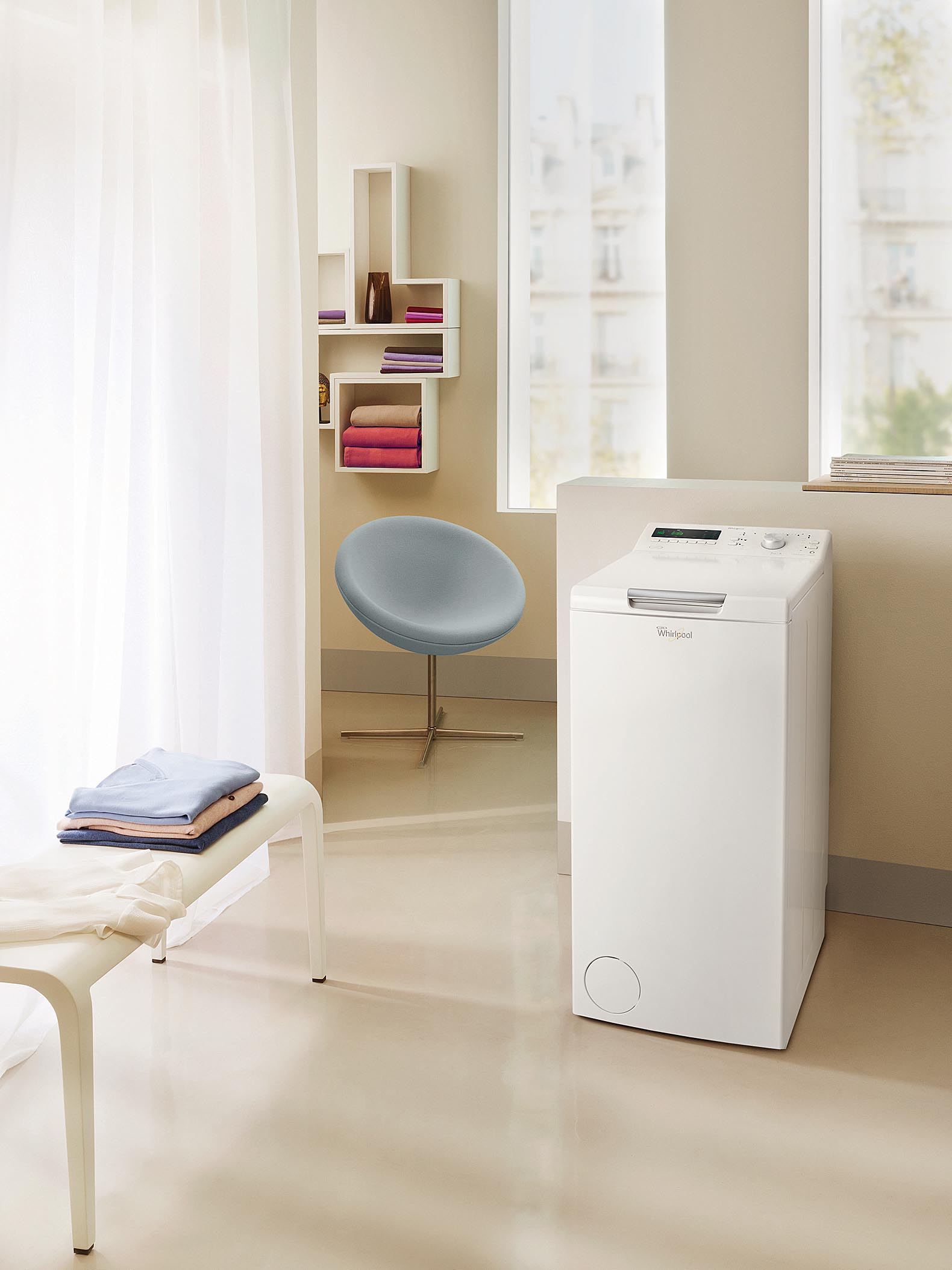 Máquina de lavar roupa com carga vertical. O tambor suporta até 6 kg de linho. Devido ao pequeno tamanho caber em qualquer sala. Gire a 1000 rpm. Após essa secagem, a roupa sai semi-seca e o processo de secagem é rápido. O programa "Proteção contra vincos" não permitirá que roupas se deformam, o que facilitará muito a passagem
