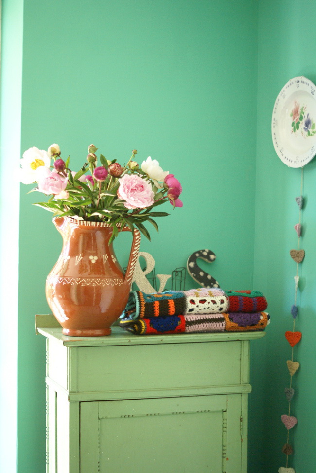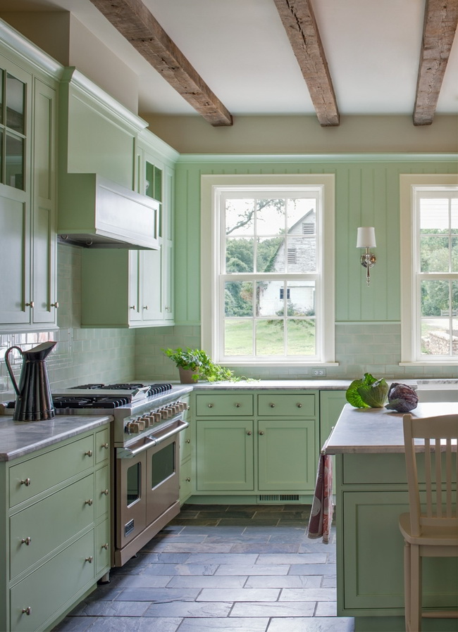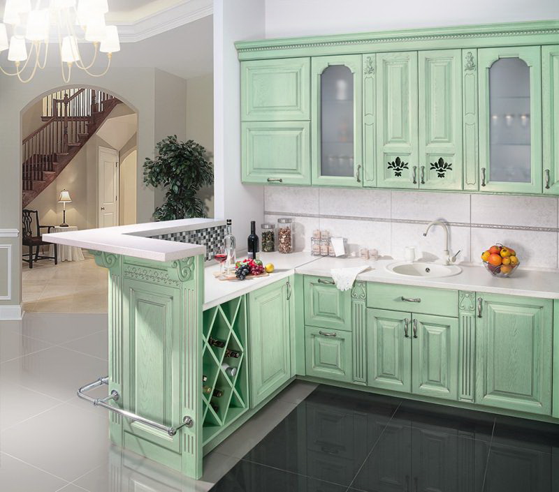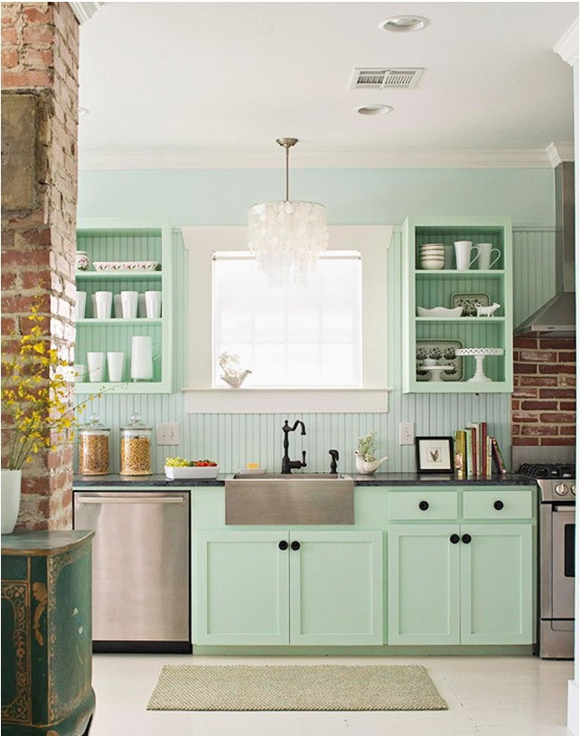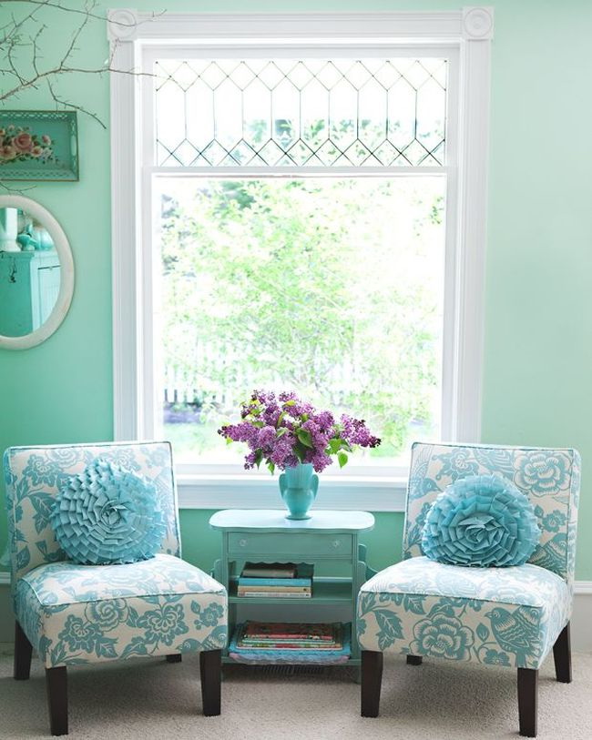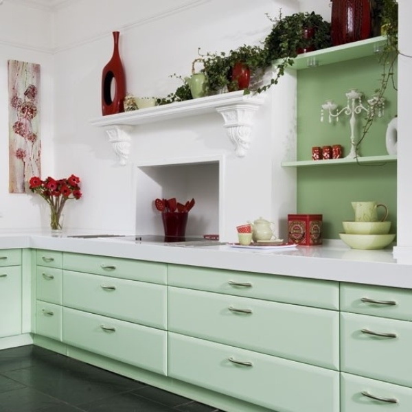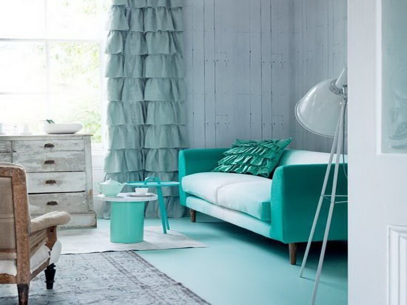 Primeiro de tudo você pode escolher para paredes e armários na cozinha, especialmente para vintage, interiores rústicos casa. É facilmente integrado em diferentes locais da sua decoração, por exemplo, em têxteis. Verdes de hortelã também são adequados para um ambiente romântico.