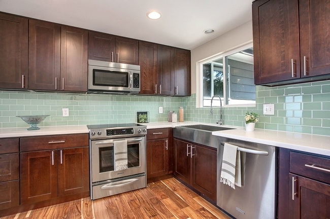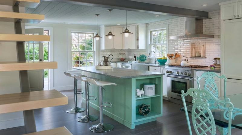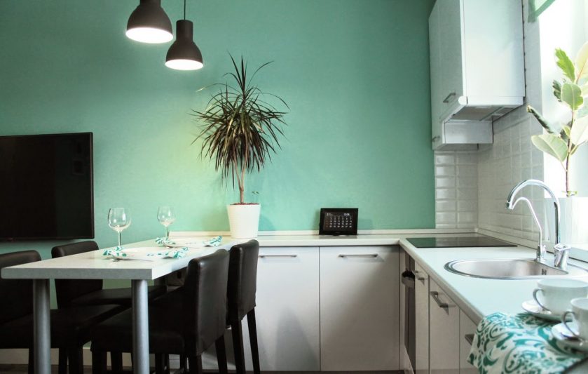 Crie um efeito brilhante e arrojado, combinando metal com hortelã, especialmente esta combinação é importante para a cozinha, onde você pode colocar um monte de aparelhos de metal.Em combinação com elementos brilhantes de metal na cozinha, a hortelã parece fresca e fresca. Combine bronze com hortelã para um visual elegante e luxuoso ou com níquel mate lâmpadaspara criar um espaço decididamente legal.