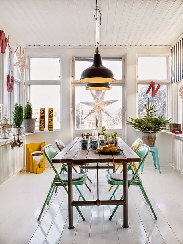 - Café com Menta mesaCadeiras são a escolha óbvia. Se você não quer que a sensação retro fique fora de controle, basta adicionar um tom diferente de cadeira para equilibrar a hortelã fresca!