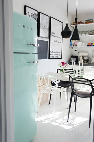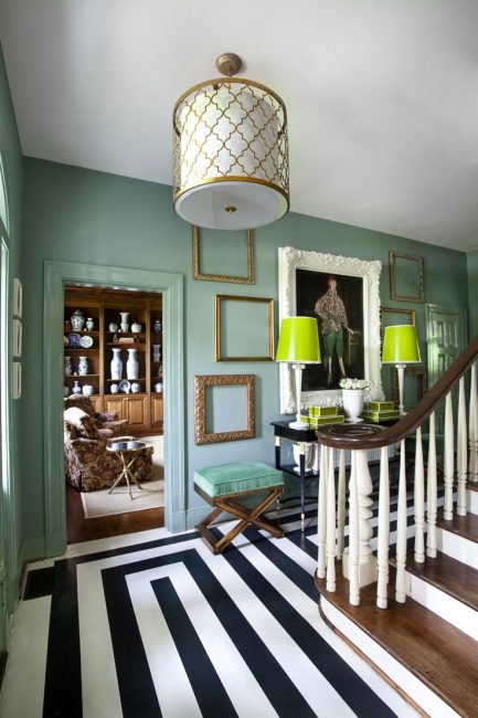 Esta é uma maneira radical, mas muito eficaz de decorar. Um par de hortelã com preto móveis ou molduras lacadas - uma dessas maneiras que deixarão uma impressão vívida.