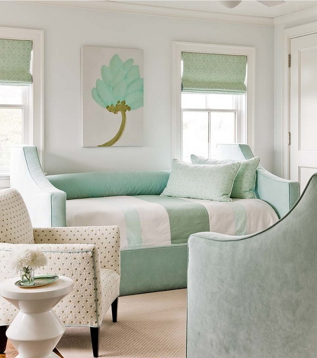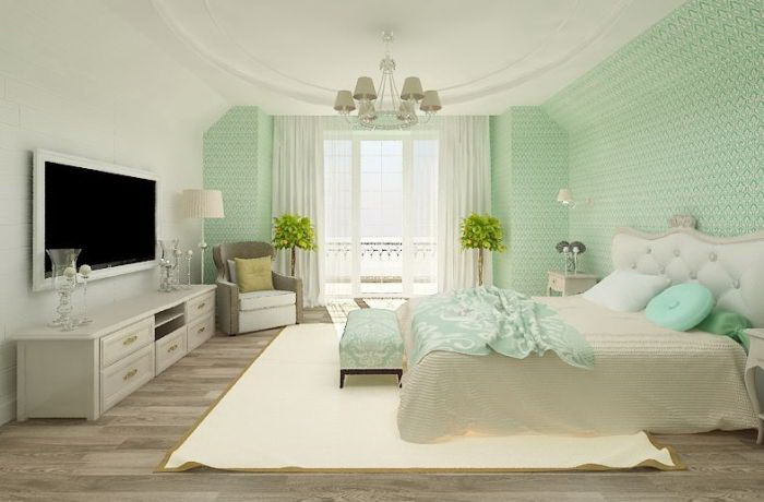 Hortelã - calmo, bonito. É apropriado para diferentes estilos, parece bom em moderno, design minimalista, quartos tradicionais, design vintage, shebbi-chic. Desde que é combinado com muitas cores, e também funciona em diferentes tipos de quartos, o design da casa com esta sombra é bastante simples e um decorador novato pode lidar com isso. Mas, apesar de sua natureza calma, há várias coisas importantes para lembrar.