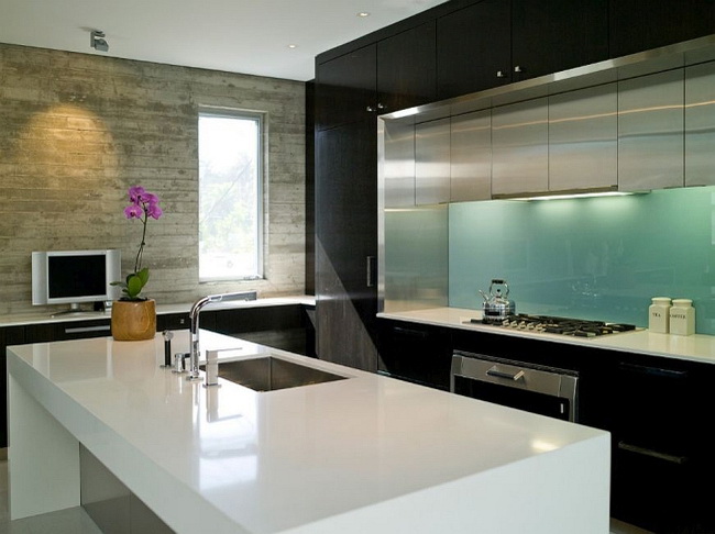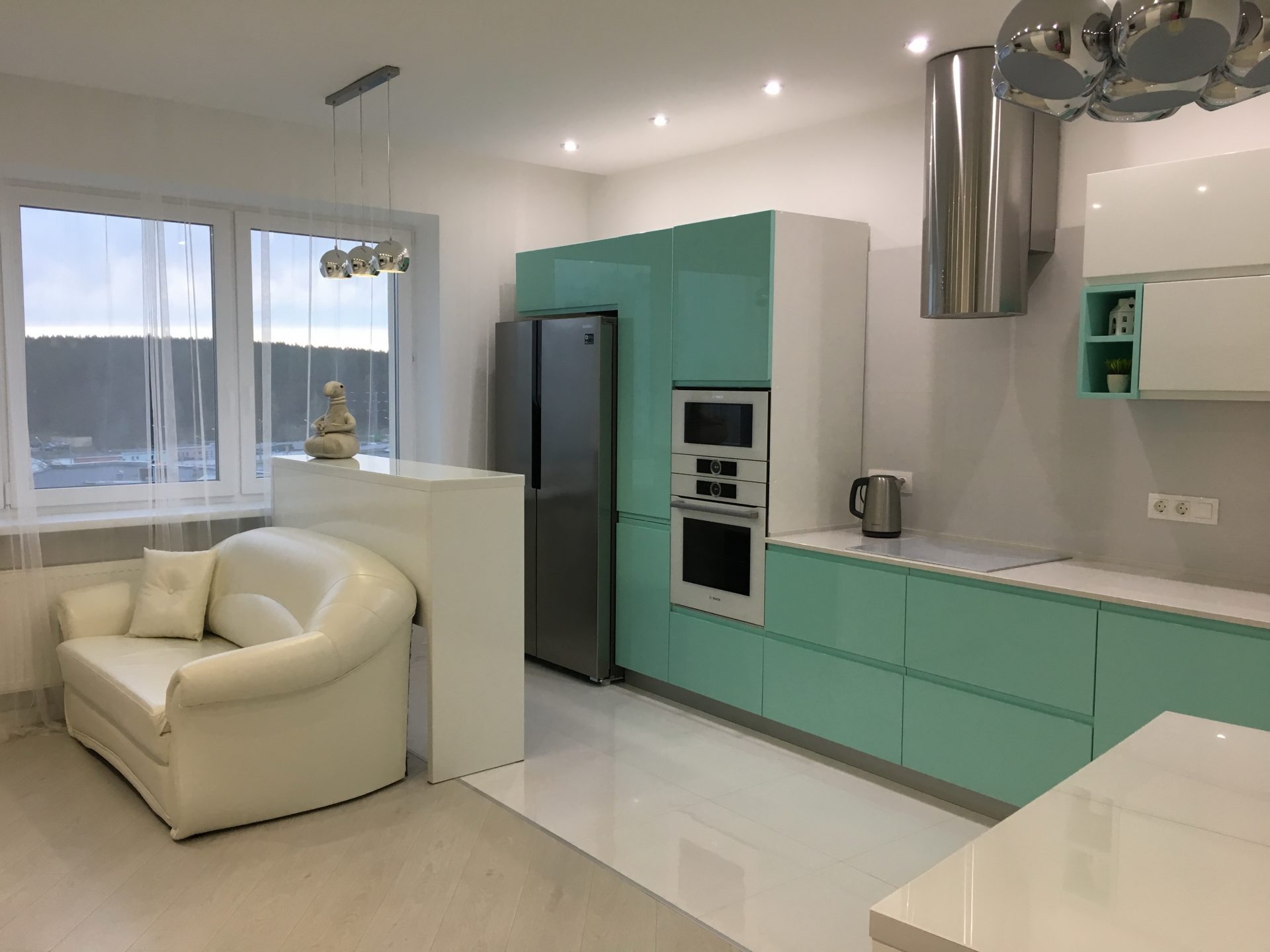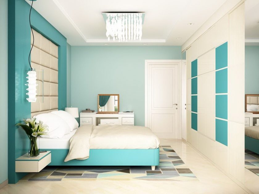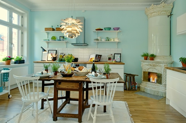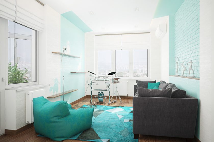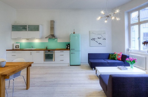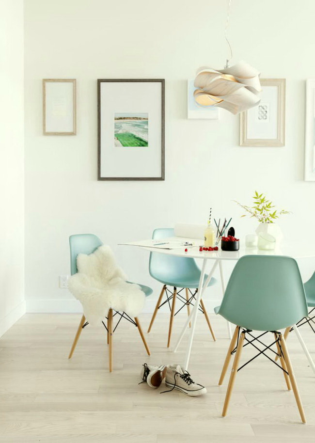 No ano passado, foi muito popular, pode-se até dizer que é uma cor de tendência - não só no design, mas também na moda. Mas desde que ele está acostumado na indústria da moda, esta é uma novidade original no interior. A peculiaridade desta cor é o espaço, conforto, portanto, é frequentemente usado para um quarto ou minicozinhas. E é extraordinariamente refrescante, torna o quarto mais limpo.