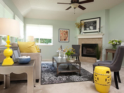 Esse interior será feliz, alegre e otimista. Inspirado pelos limões, o amarelo claro é associado ao brilho e à luz do sol. Esta é uma cor quente, por isso deve ser usada para trazer conforto para o interior.