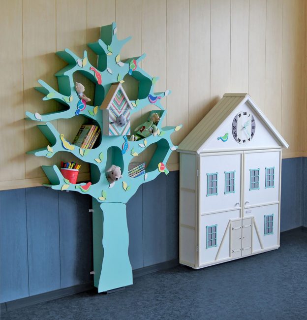 Itens de latão também são ótimos e complementam os tons mentolados. Escolha uma lâmpada de latão na perna e, ao lado, coloque uma mesa de latão para pequenas coisas - esses dois objetos formarão uma verdadeira sala de design a partir de uma sala infantil padrão.