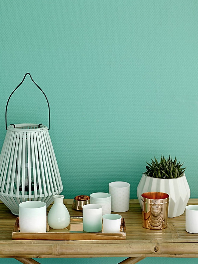 Papéis de parede tons de hortelã monofônicos são frequentemente usados em Escandinavo estilo, que é famoso por sua pureza visual, na fronteira minimalismo. A bela paleta característica do estilo escandinavo, bem como materiais naturais juntamente com as paredes de mentol criam uma combinação equilibrada e harmoniosa.
