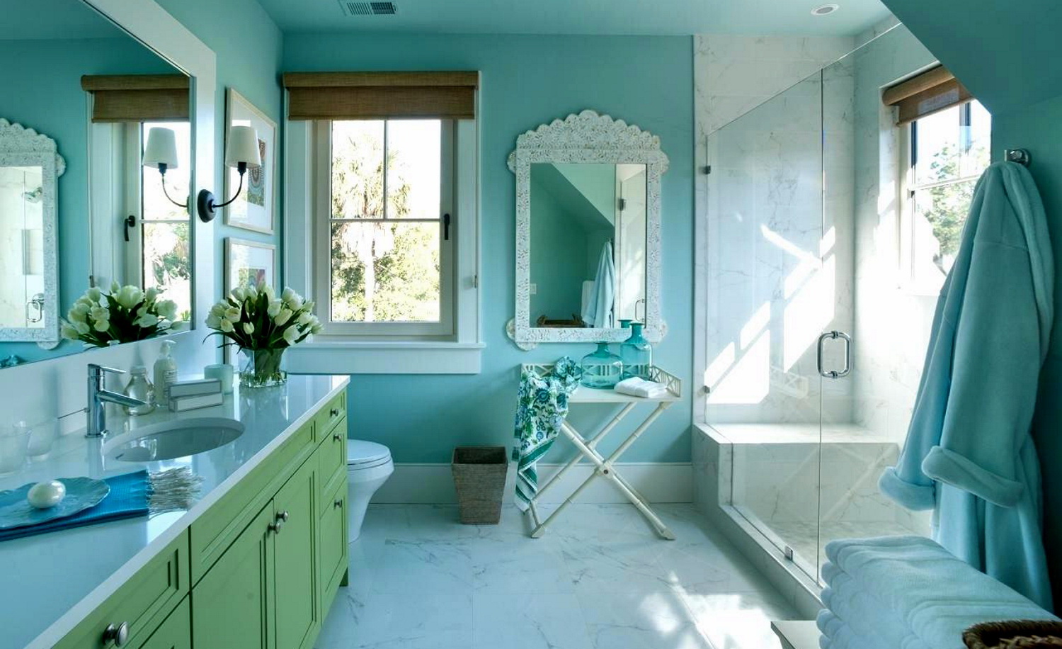 Se você quiser usá-lo em casa de banho sala, na frente de você muitas opções diferentes. Use-o para parede, piso telhas, cortinas de chuveiro ou selecione verdes hortelã para acessórios decorativos do banheiro. No banheiro, você pode usar toalhas verdes menta ou detalhes românticos para criar retrôestilo