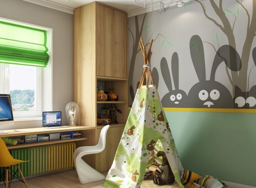 Papel de parede de hortelã não tecido é lindamente decorado berçário quarto de ambos os sexos.