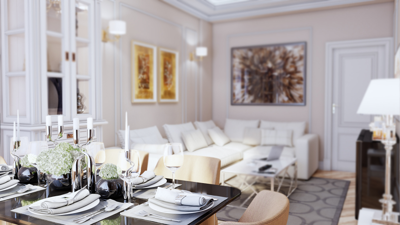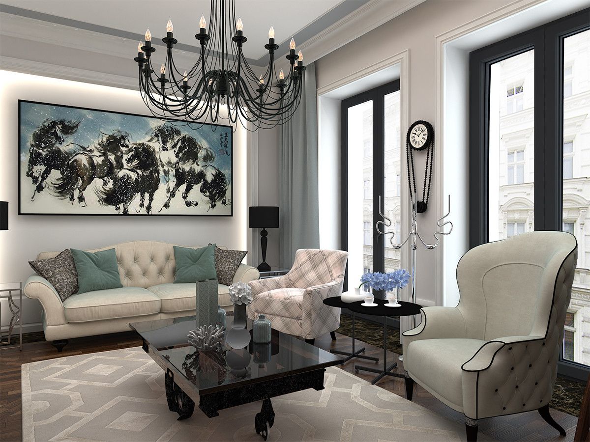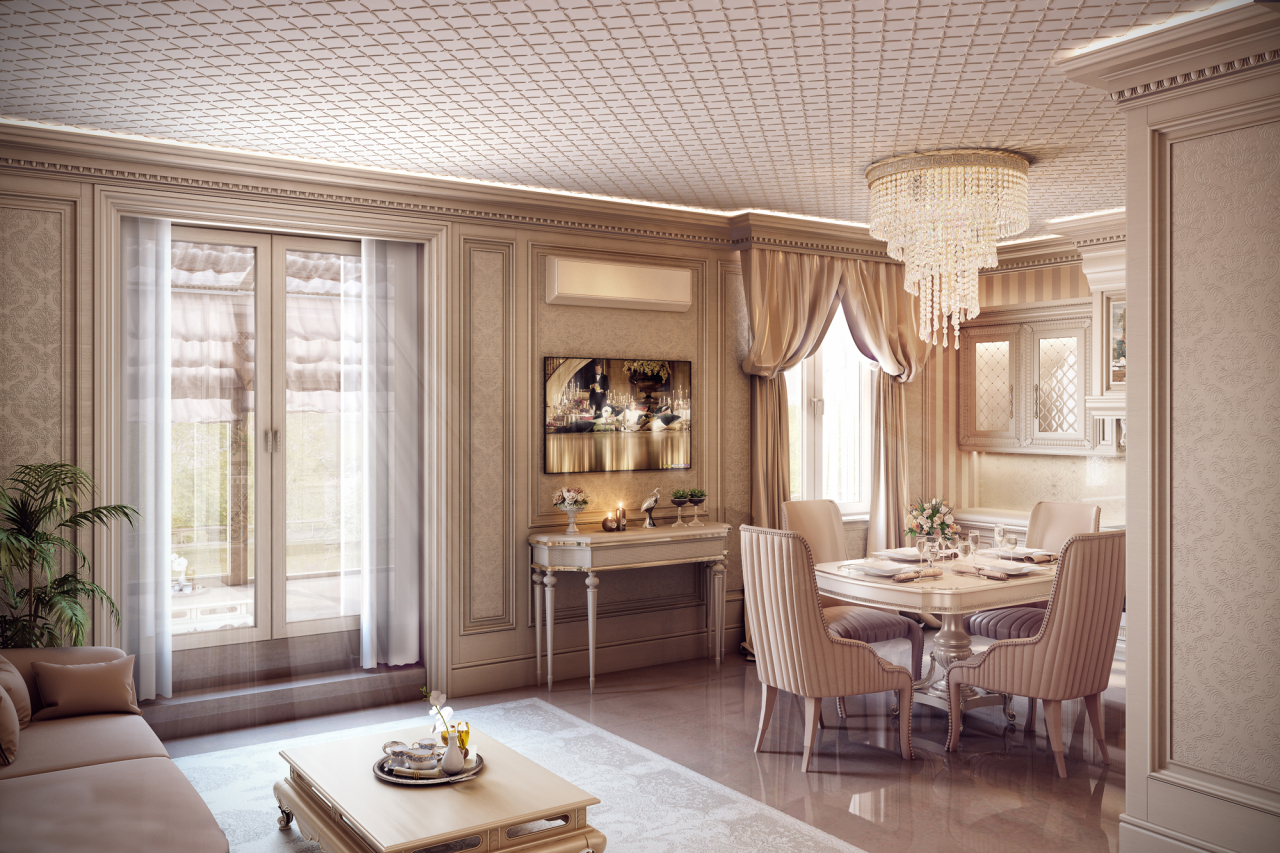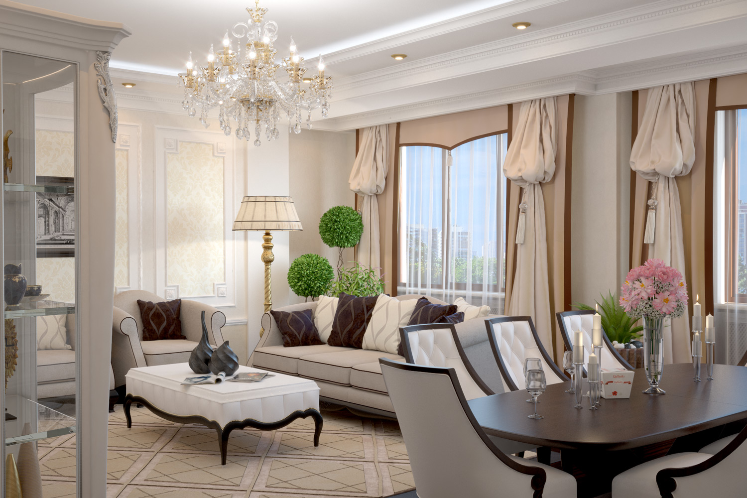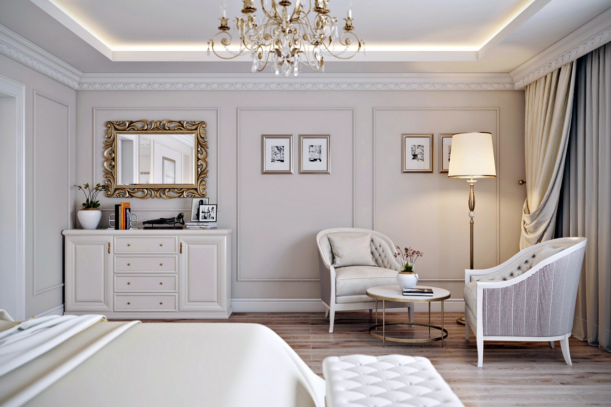 O interior neoclássico é escolhido por pessoas autoconfiantes que desejam pagar um alto preço pelo conforto. Mobiliário caro juntamente com o uso mínimo de decoração atesta o status social do proprietário. É mais barato gastar uma grande quantidade de tempo para renovar um apartamento, a fim de adquirir um ambiente rico por décadas.