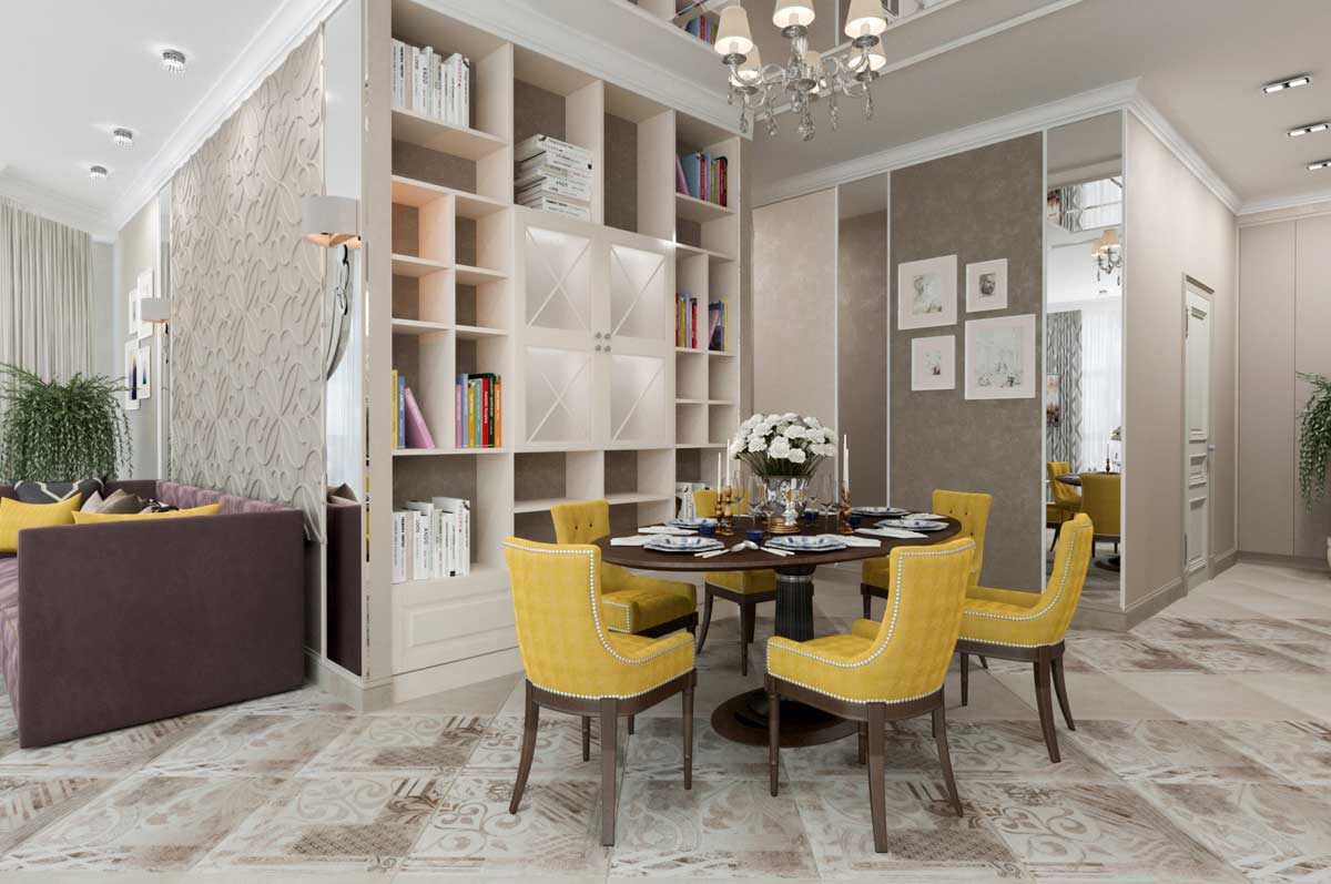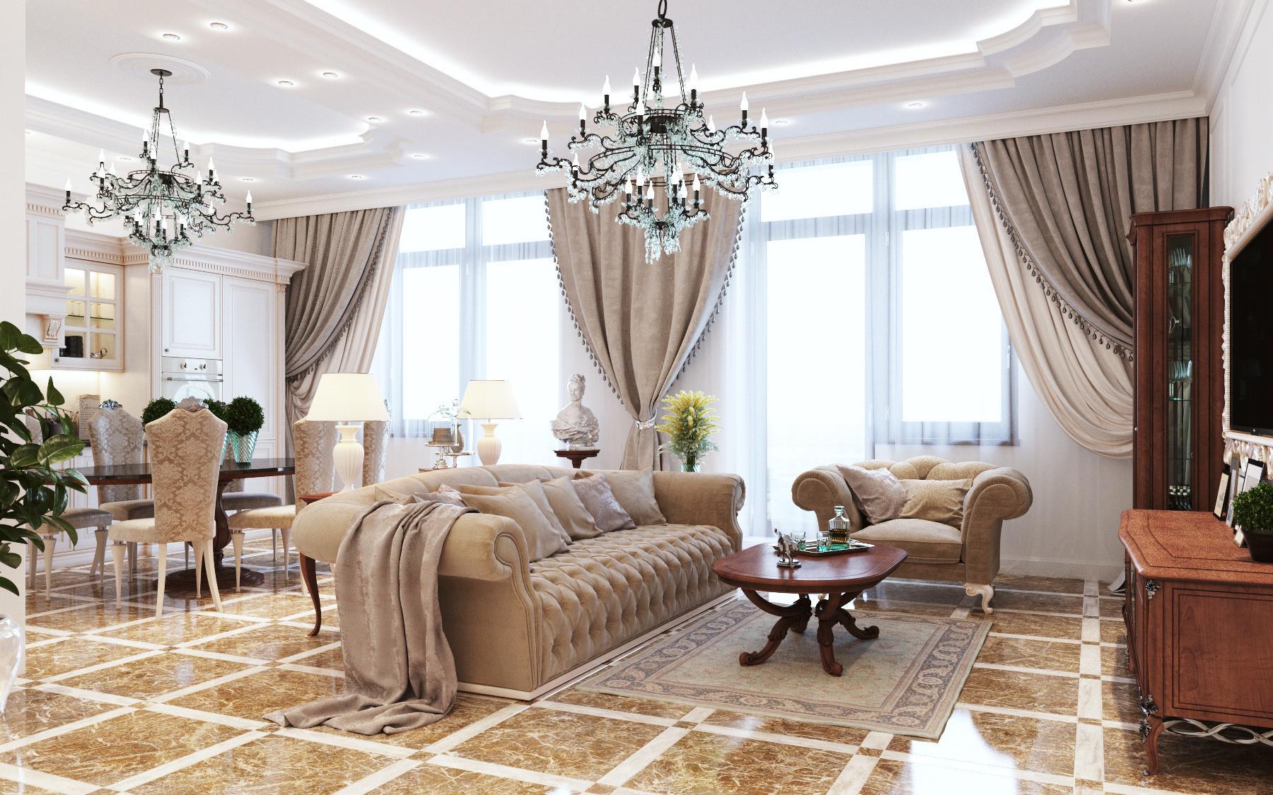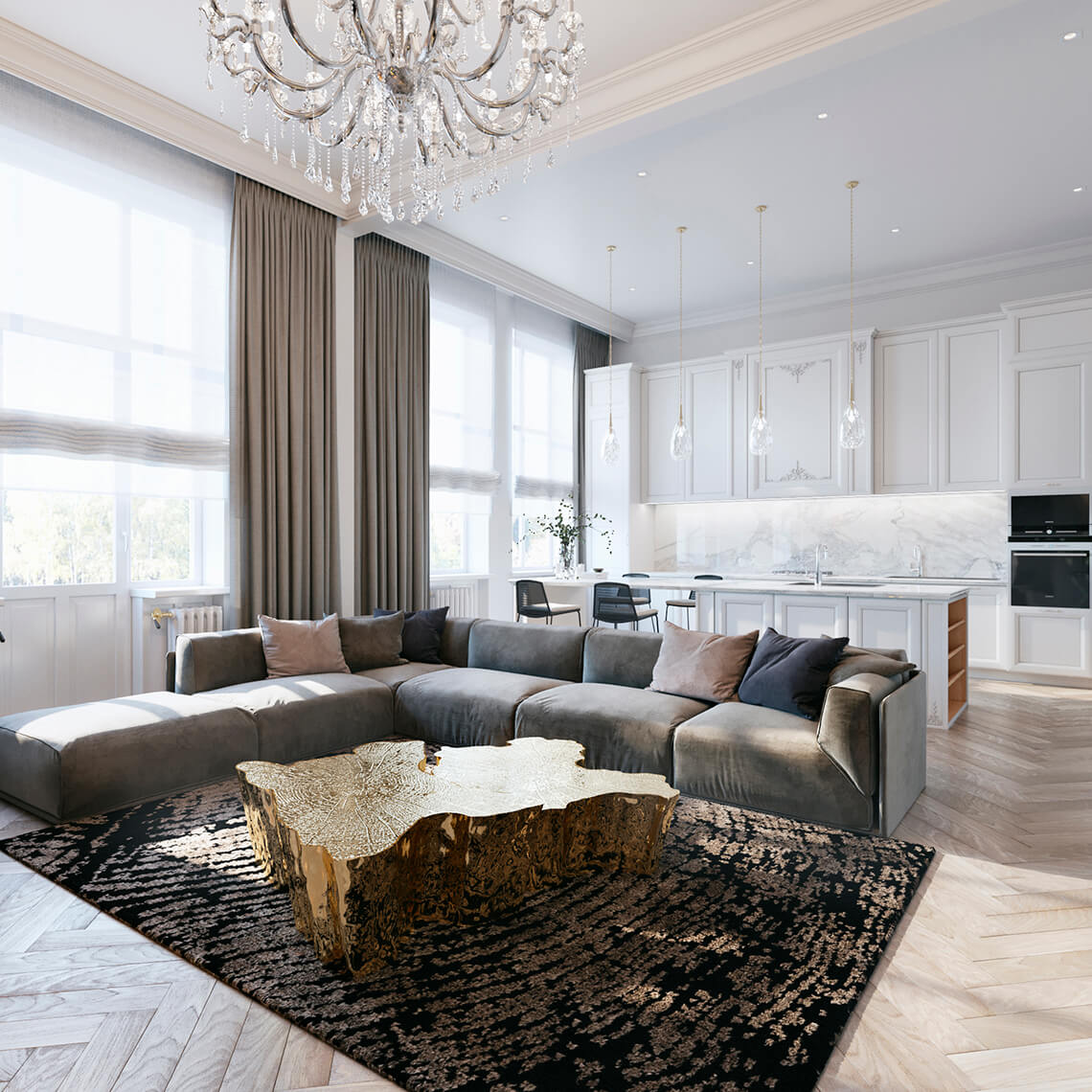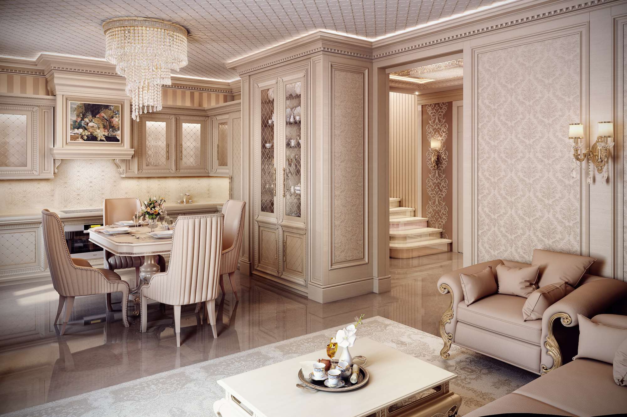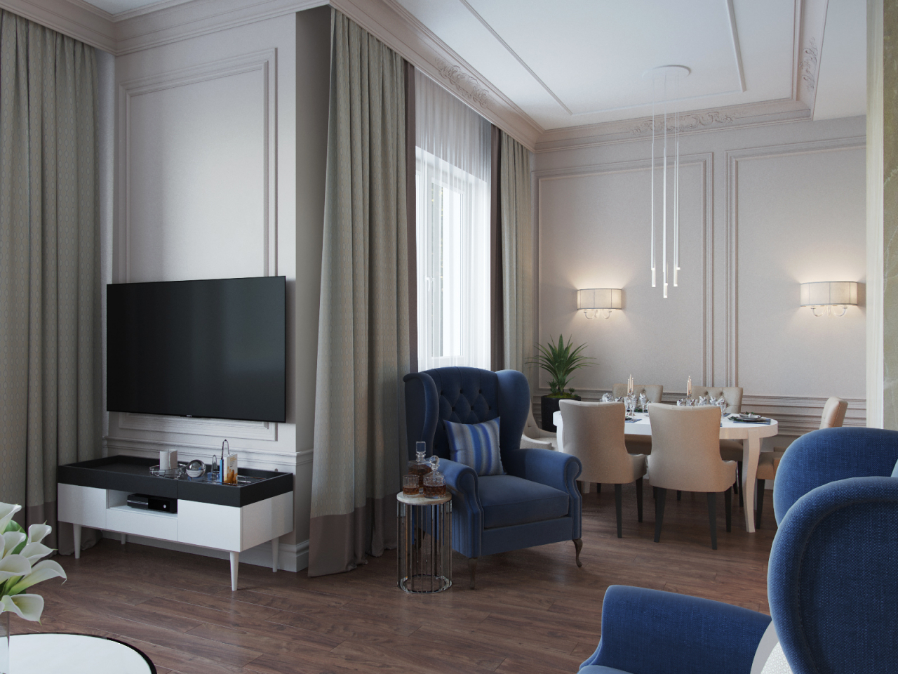 O interior neoclássico é escolhido por pessoas autoconfiantes que desejam pagar um alto preço pelo conforto. Mobiliário caro juntamente com o uso mínimo de decoração atesta o status social do proprietário. É mais barato gastar uma grande quantidade de tempo para renovar um apartamento, a fim de adquirir um ambiente rico por décadas.