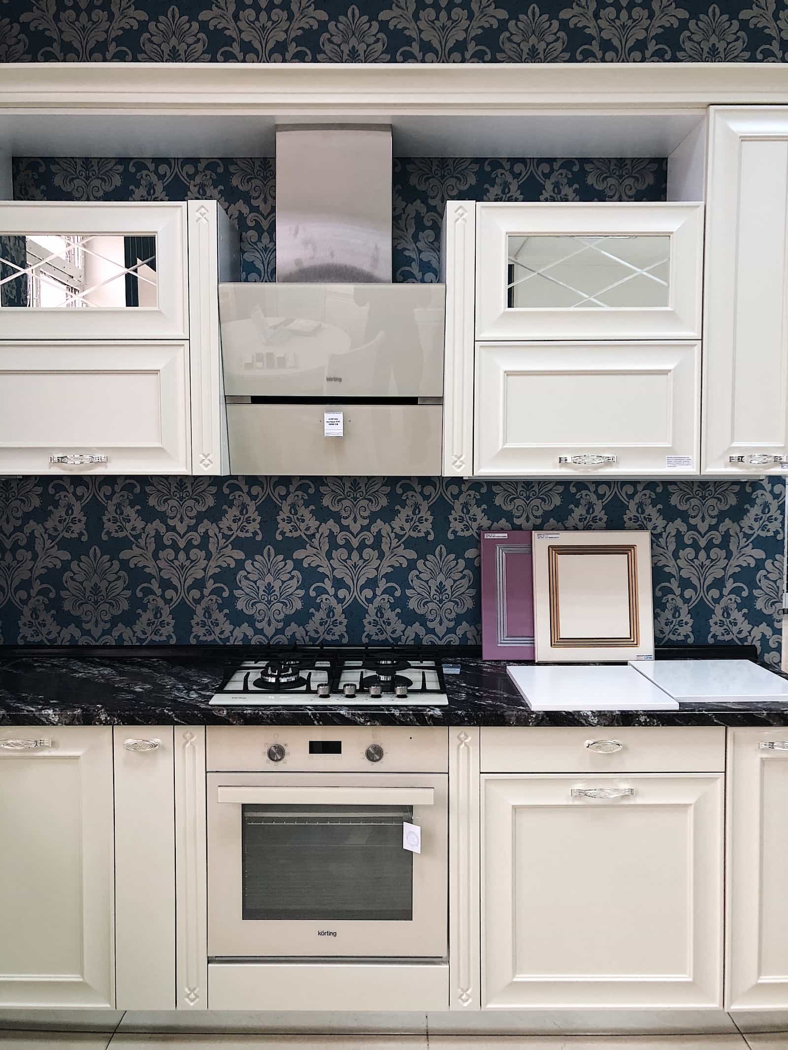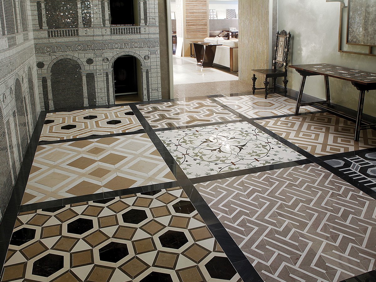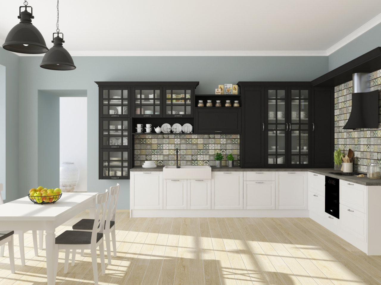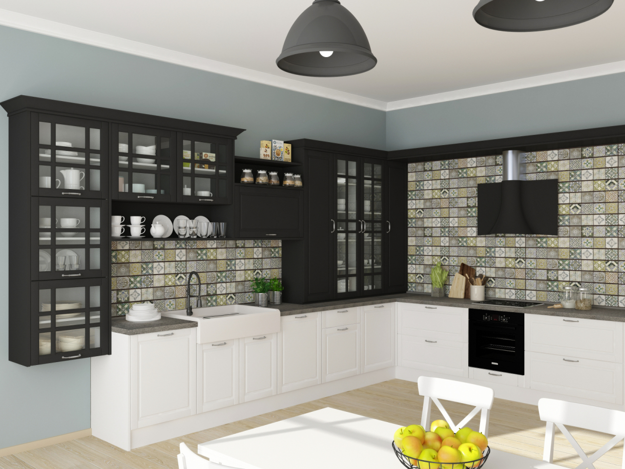 No interior do neoclássico, as paredes e o piso são revestidos de cerâmica. É aconselhável ficar em cores pastel com padrões antigos.