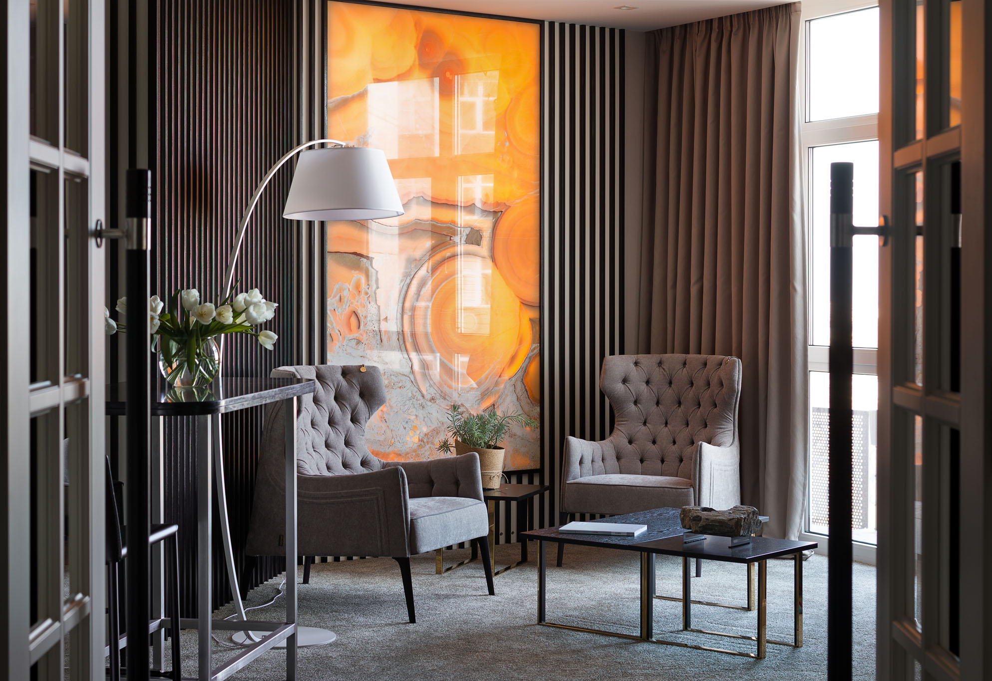 O interior assume o papel principal da iluminação - os raios solares das grandes janelas são complementados pela iluminação artificial suave.