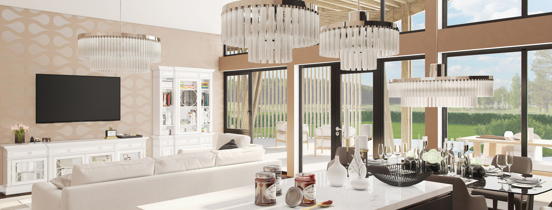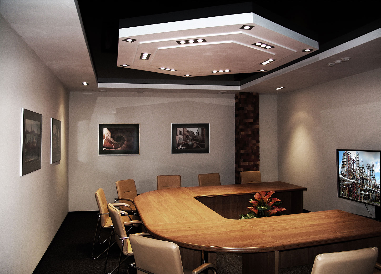 - As lâmpadas são colocadas pontualmente. A base dos instrumentos é de metal, e as luminárias do teto são feitas de vidro liso ou fosco.