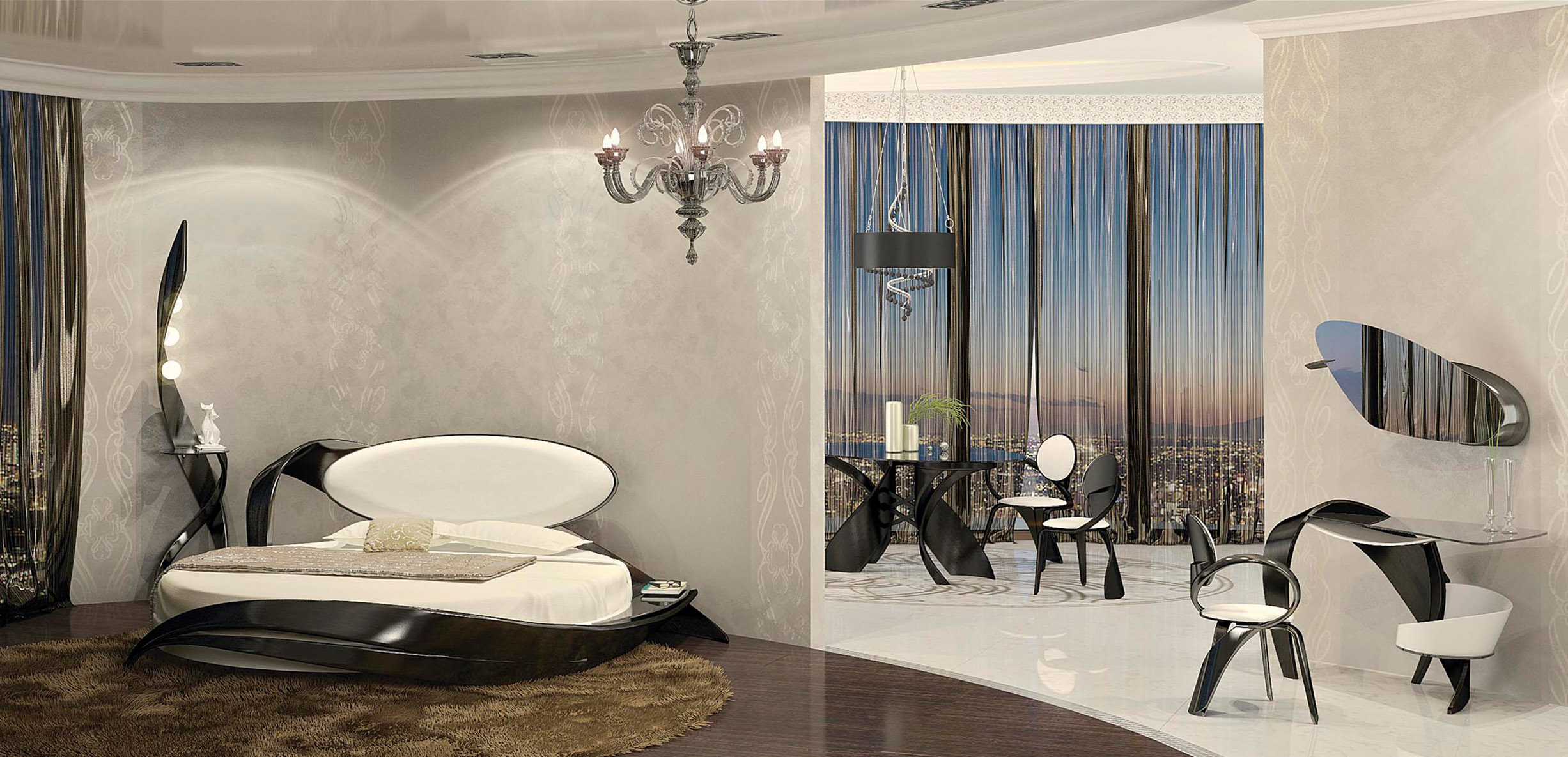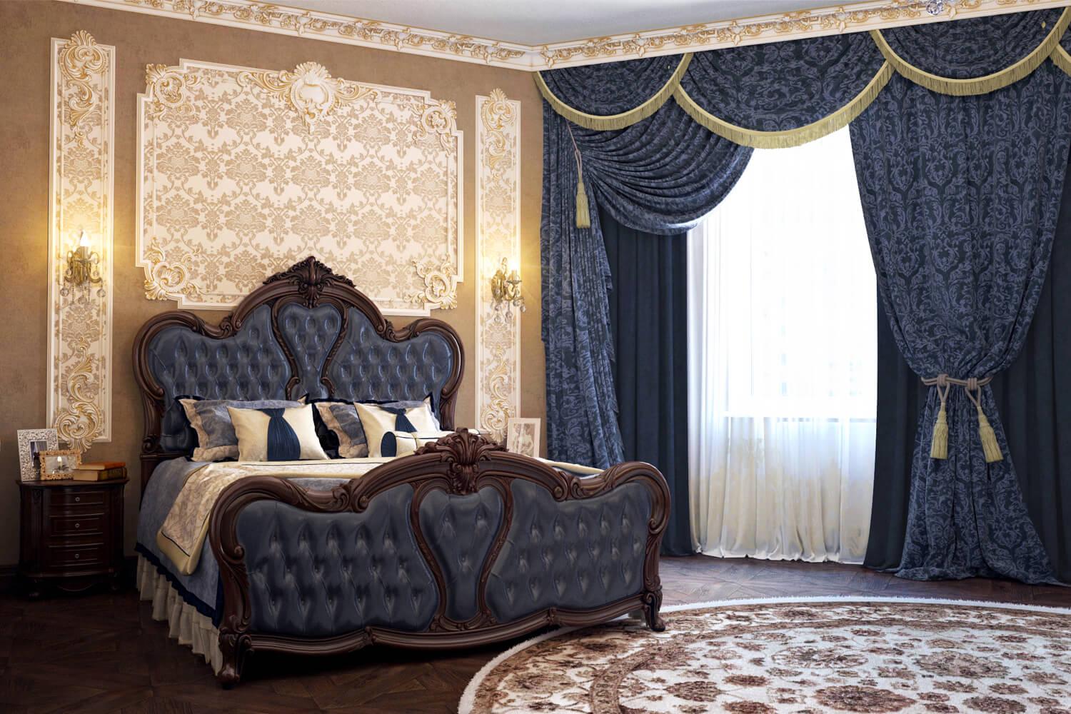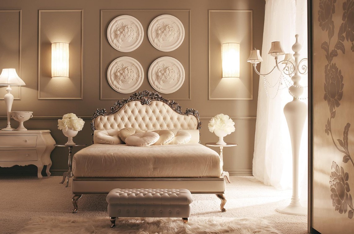 - A parte central do interior do quarto é deixada para um duplo retangular. as camas de valiosas raças de uma árvore. A decoração do mobiliário será esculpida à mão, escolha padrões florais. Pode pendurar sobre o dossel da cama de tecido pesado. Para cabeceira obtyagivaniya usar seda ou veludo. A cama é colocada ao longo da sala, evitando o arranjo transversal.