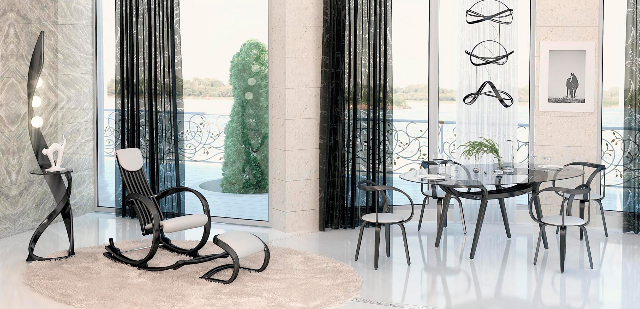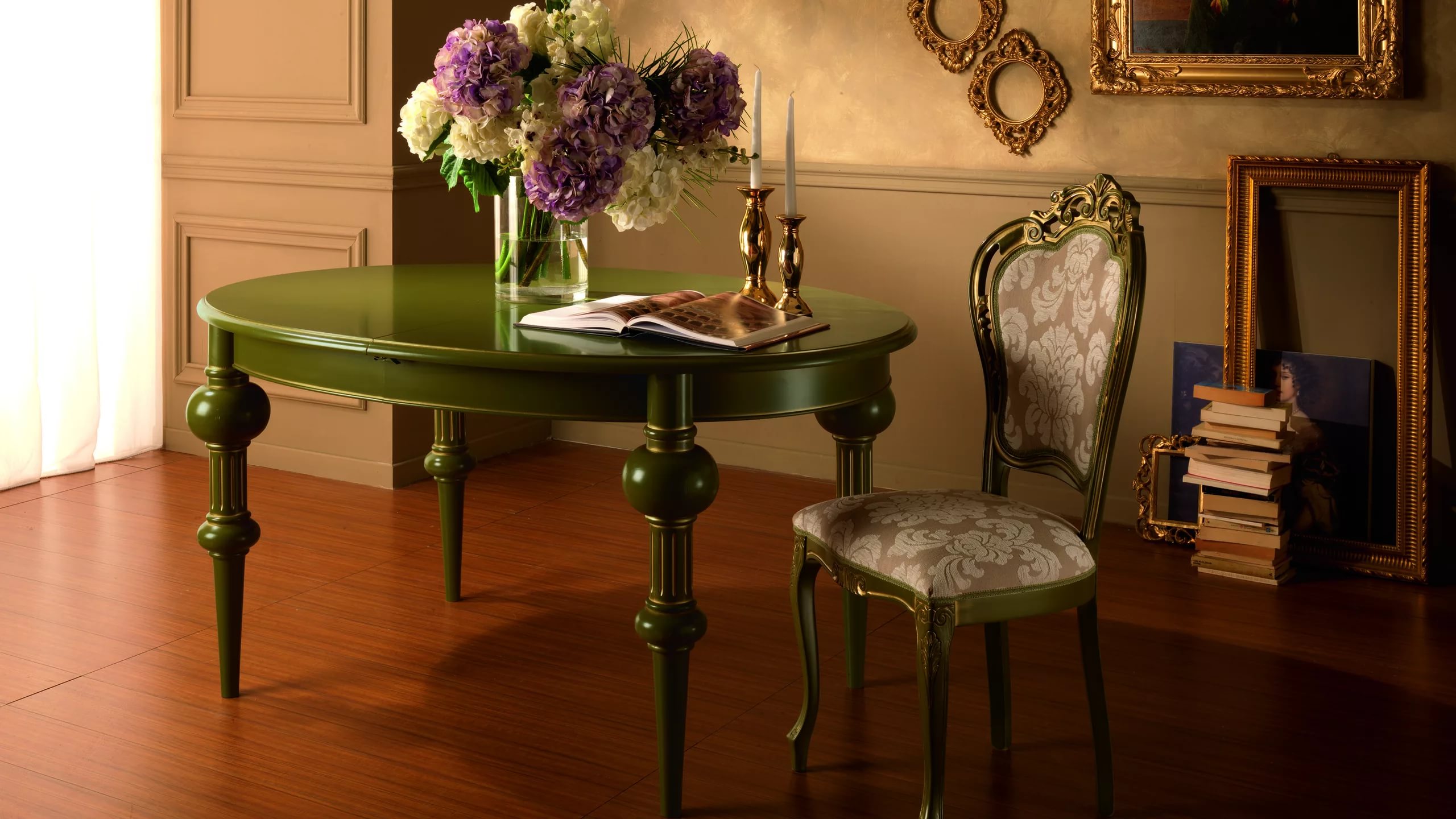 - Móveis feitos de ébano ou mogno, pau-rosa ou carvalho. O conjunto não deve parecer maciço, a solução para o neoclassicismo é a mobília leve com pernas entalhadas.