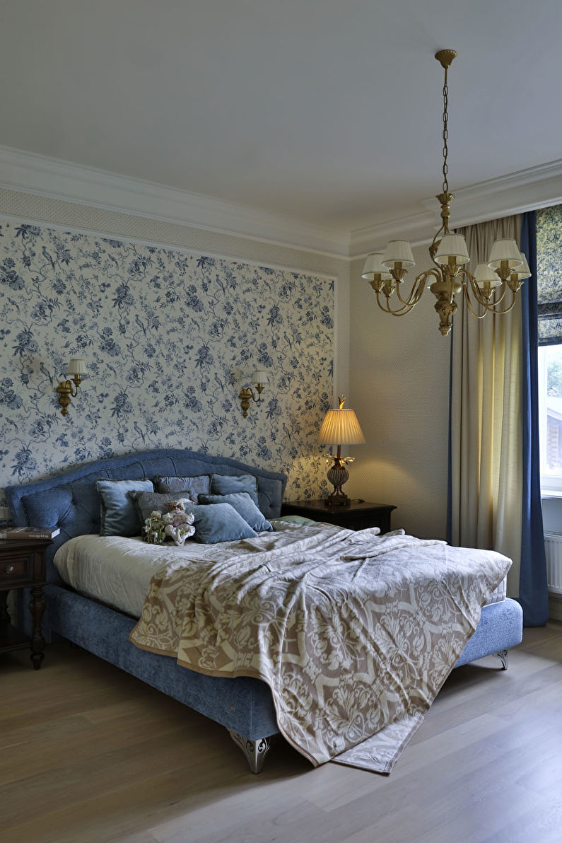 - Papel de parede ou papel de parede têxtil escolha uma paleta discreta. Às vezes eles são decorados com padrão floral discreto.