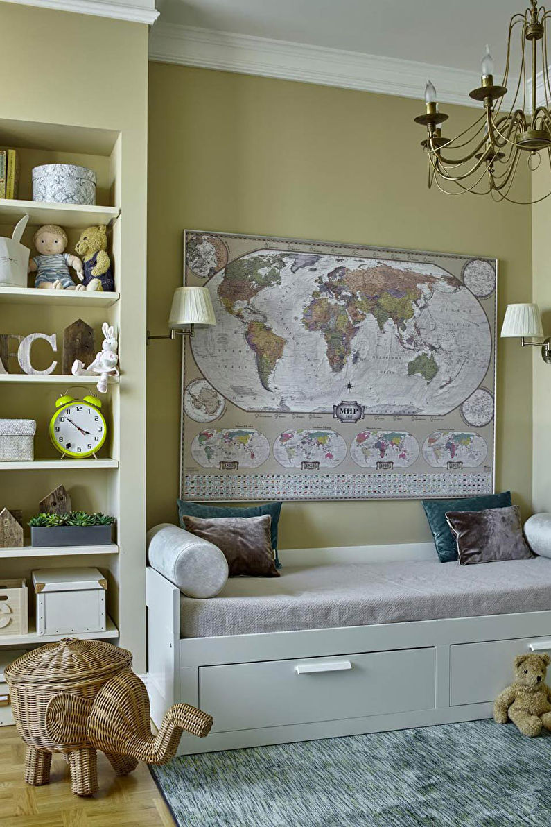 - On papel de parede, tapetes e cortinas arranjou padrões florais ou imagens de criaturas da floresta.