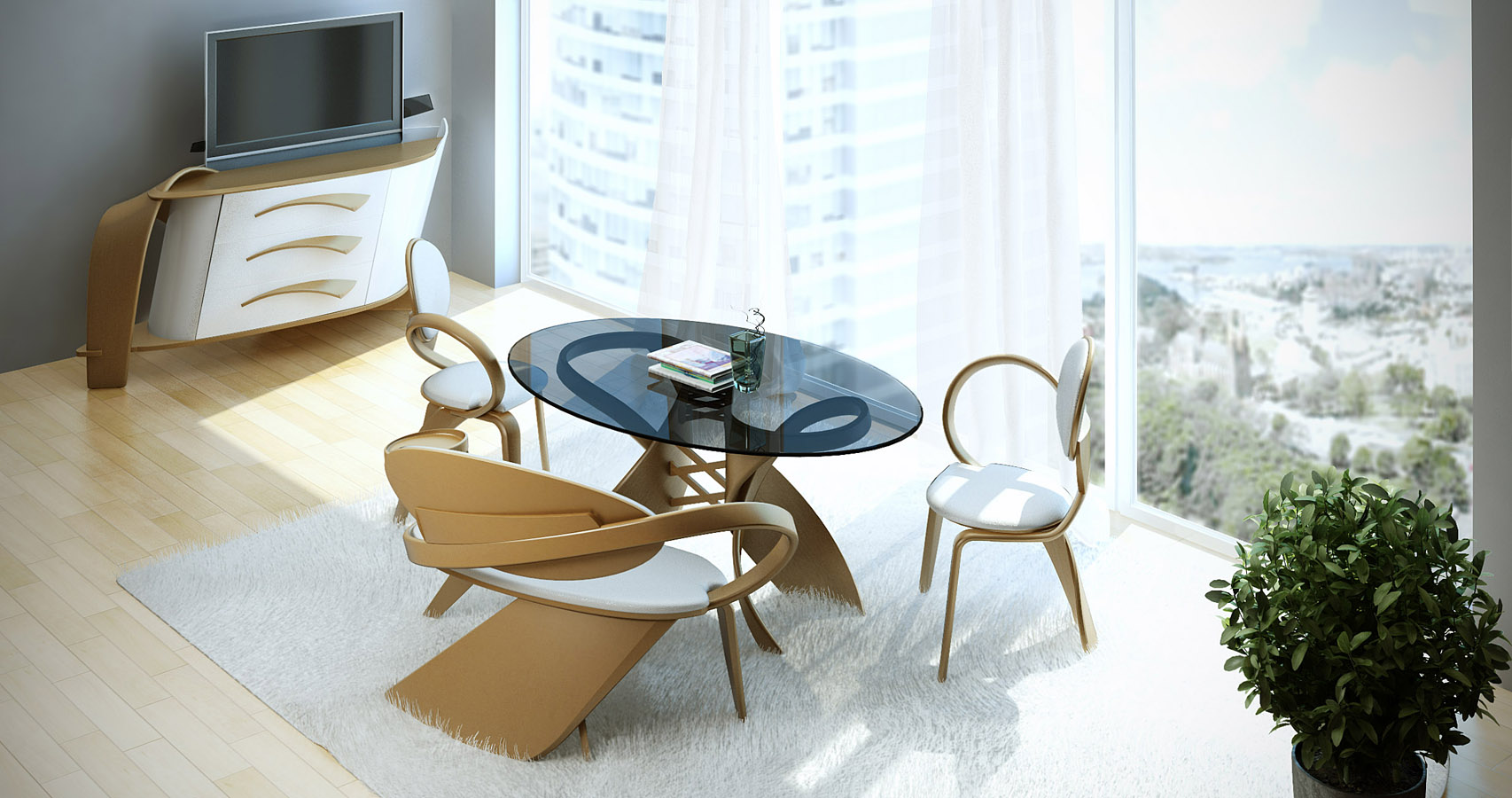 - Conjuntos de móveis são projetados em formas estritamente geométricas regulares.