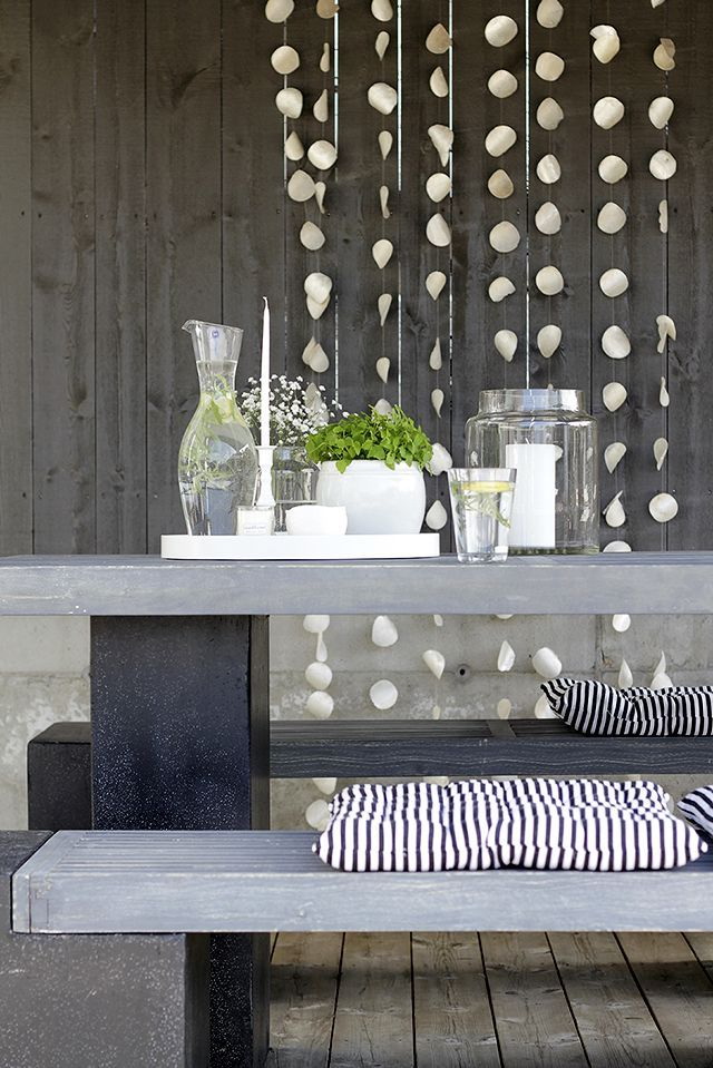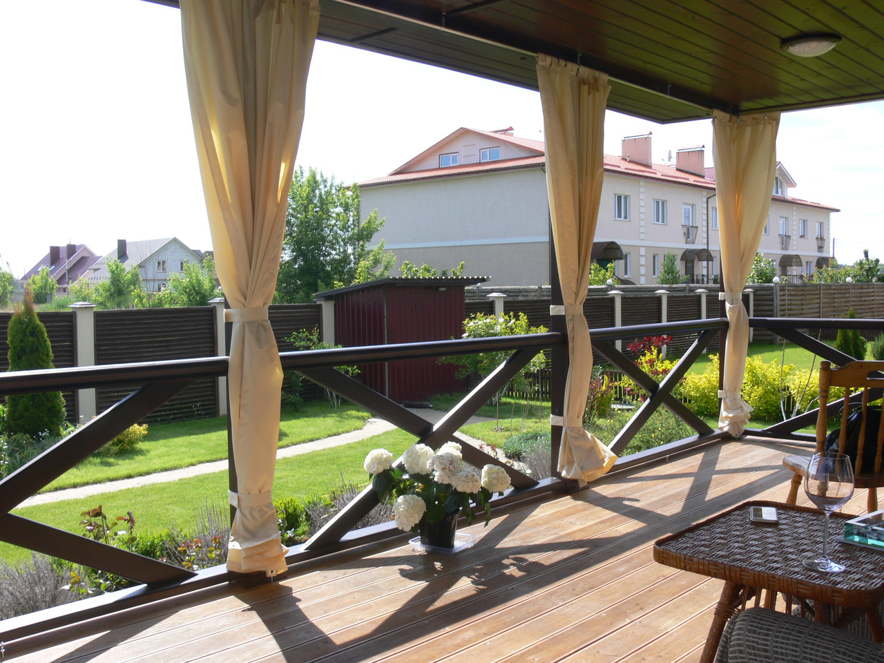 O tecido arejado é impulsionado pela menor brisa, mas também protege e garante a privacidade. Se você vive em um clima com sol forte, a rua pode ser instalada do lado de fora da casa para que o sol não atinja suas janelas e não aqueça o lugar como um forno. Outdoor pode parecer um rack para usá-los no quintal para um piquenique, na varanda e outras áreas abertas para um bom descanso ao ar livre e entretenimento.