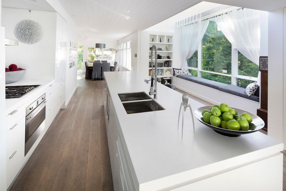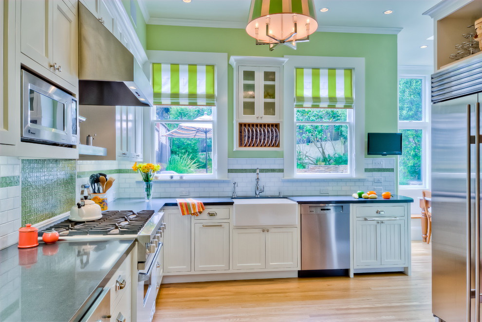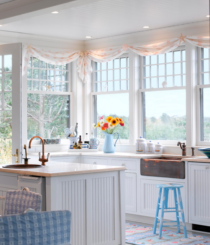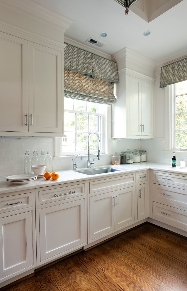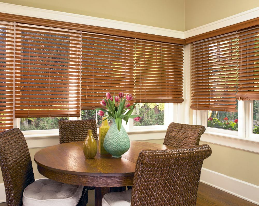Uma vez que a cozinha tem alta umidade e mudanças constantes de temperatura, as persianas de madeira artificiais são uma excelente escolha, já que elas não entortam nem desbota. Eles são fãs naturais e são duráveis até mesmo para as donas de casa mais ativas.