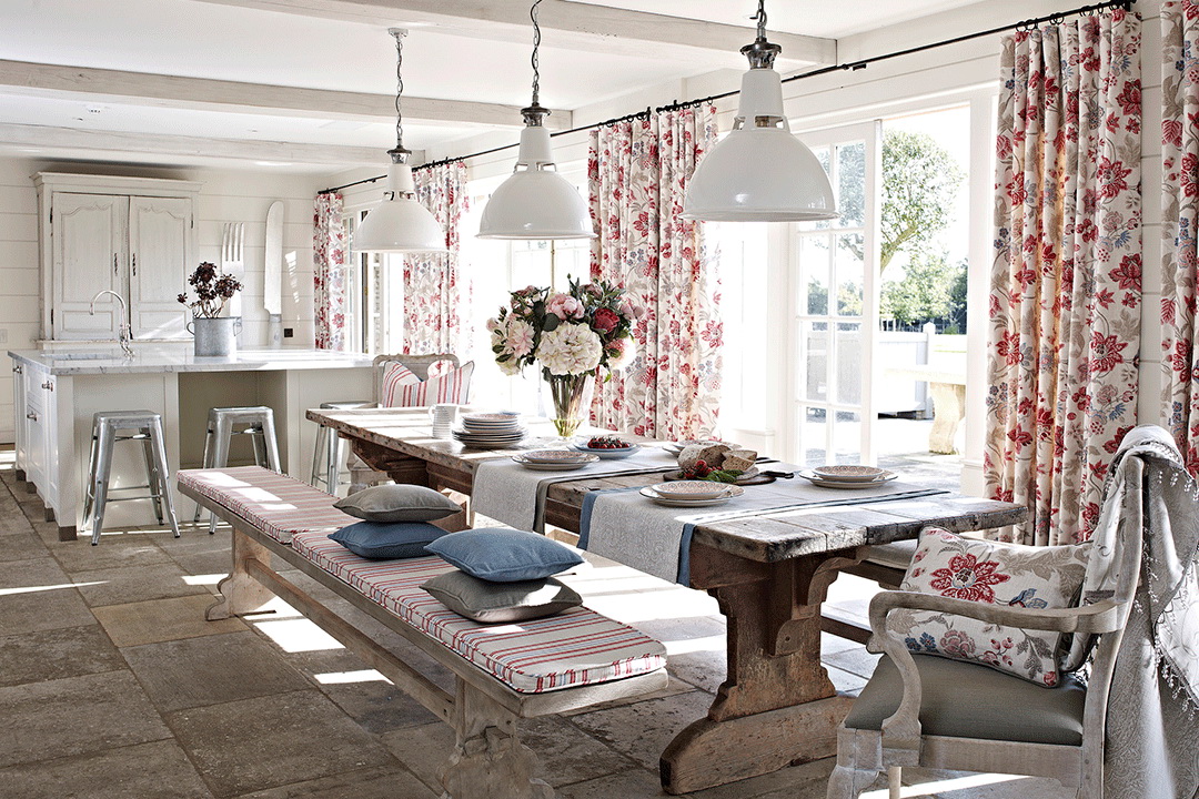 Eventos importantes são celebrados aqui - um ritual familiar ou uma grande festa que acontece várias vezes por ano. Se você gosta de formalidade, eu sugiro cortinas altas, porque elas ajudam a fazer um efeito do chão ao teto para obter uma sensação de altura e importância.