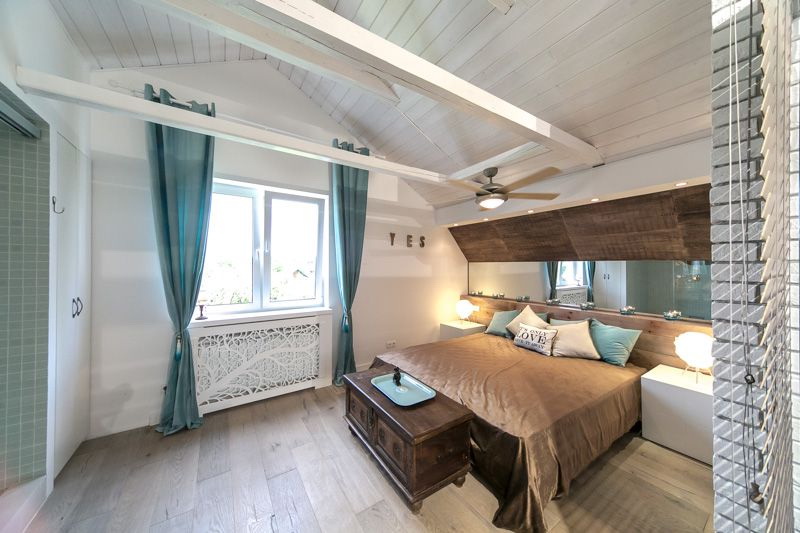 Para o quarto são belos tons escuros que criam o crepúsculo. Tons de cores também são relevantes. Possuindo uma difusão suave da luz, isolam-na suficientemente durante qualquer estação e estimulam o despertar. Mas ainda calmo o suficiente para não interferir em adormecer. Para manter a calma nesta sala, adicione automação para que suas cortinas atuem de forma independente.