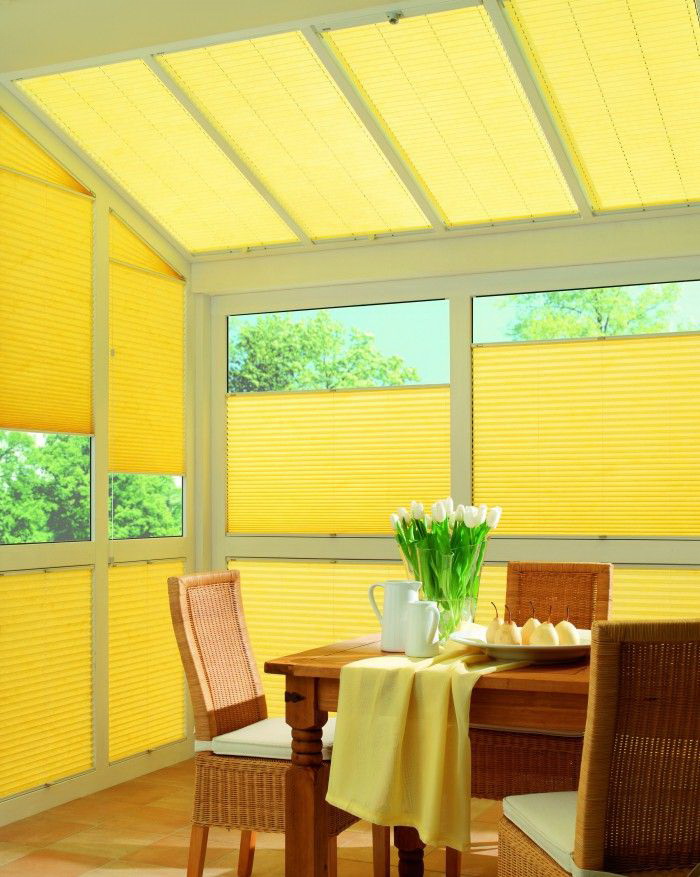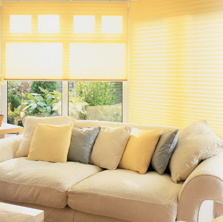 Plissado tem uma estrutura com dobras claras, em cascata em sua janela. Muitas pessoas não gostam que a luz do sol passe através das aberturas entre as dobras quando a cortina está em um estado abaixado.