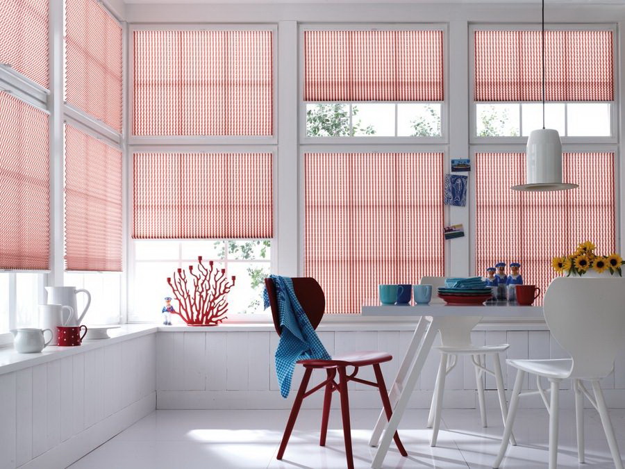 Isso é dramático, mas ainda é interessante. Se você estiver mais relaxado, Roman ou rolo manterá o espaço quente e íntimo com uma sensação suave de casa. Favo de mel ou plissado - uma ótima opção para quem visita a sala de jantar para todas as comemorações - grandes ou pequenas.