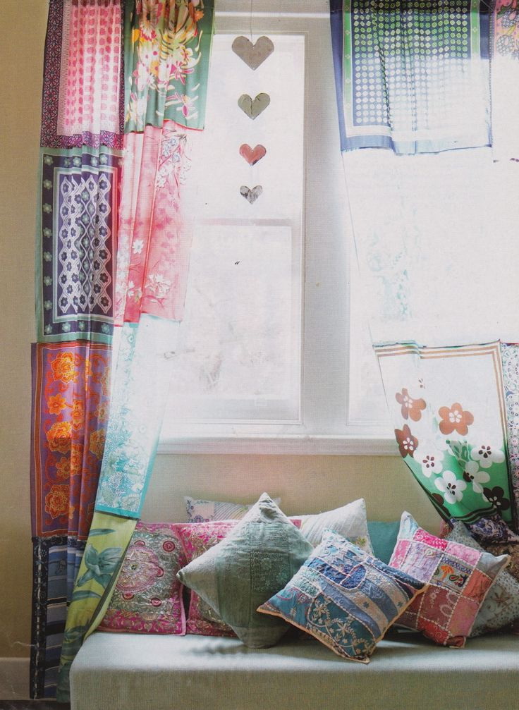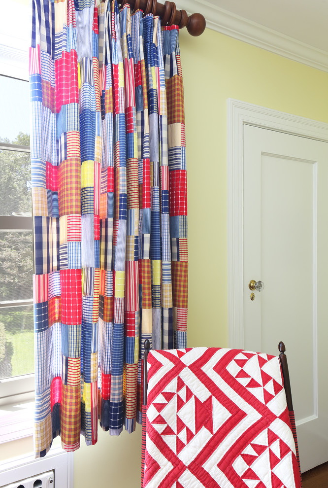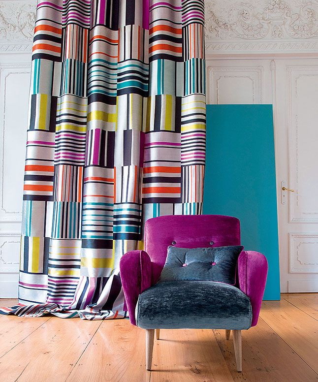 - cortinas de material duplo na forma de blocos coloridos ou listras largas.
