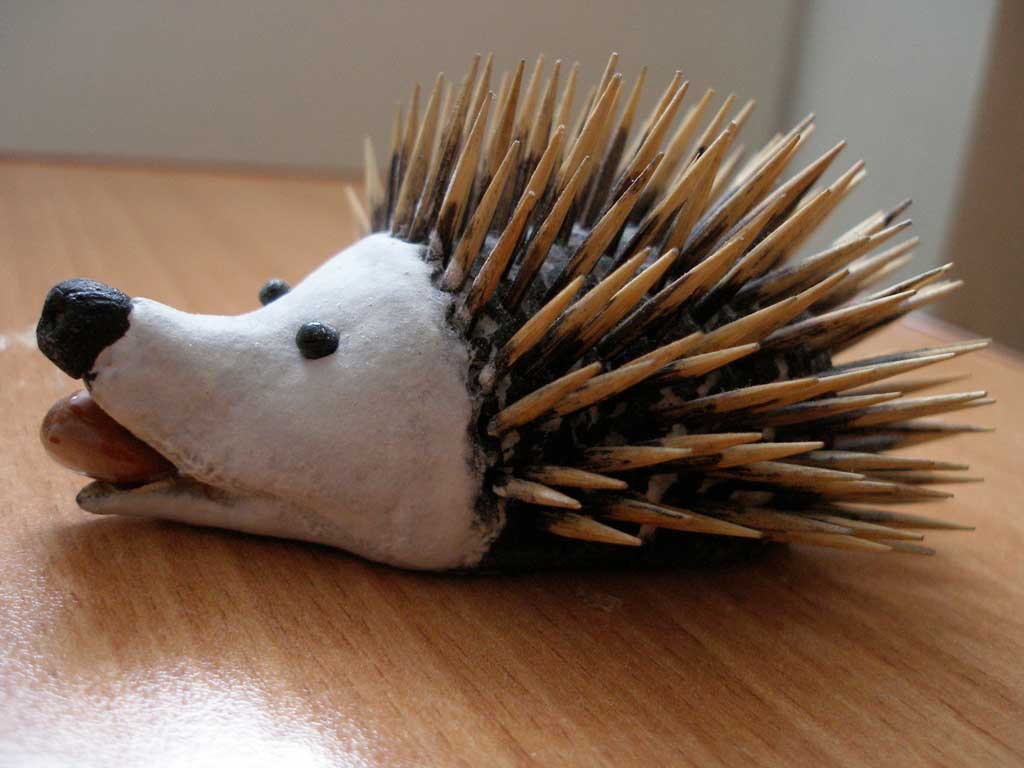 - Mais difícil - faça um cone grande de massa e, beliscando com uma tesoura de unha, cubra com agulhas. O trabalho é insignificante e com um objeto pontiagudo, porque as crianças devem ser confiáveis apenas sob a supervisão de adultos e depois de explicar o que é a tecnologia de segurança.