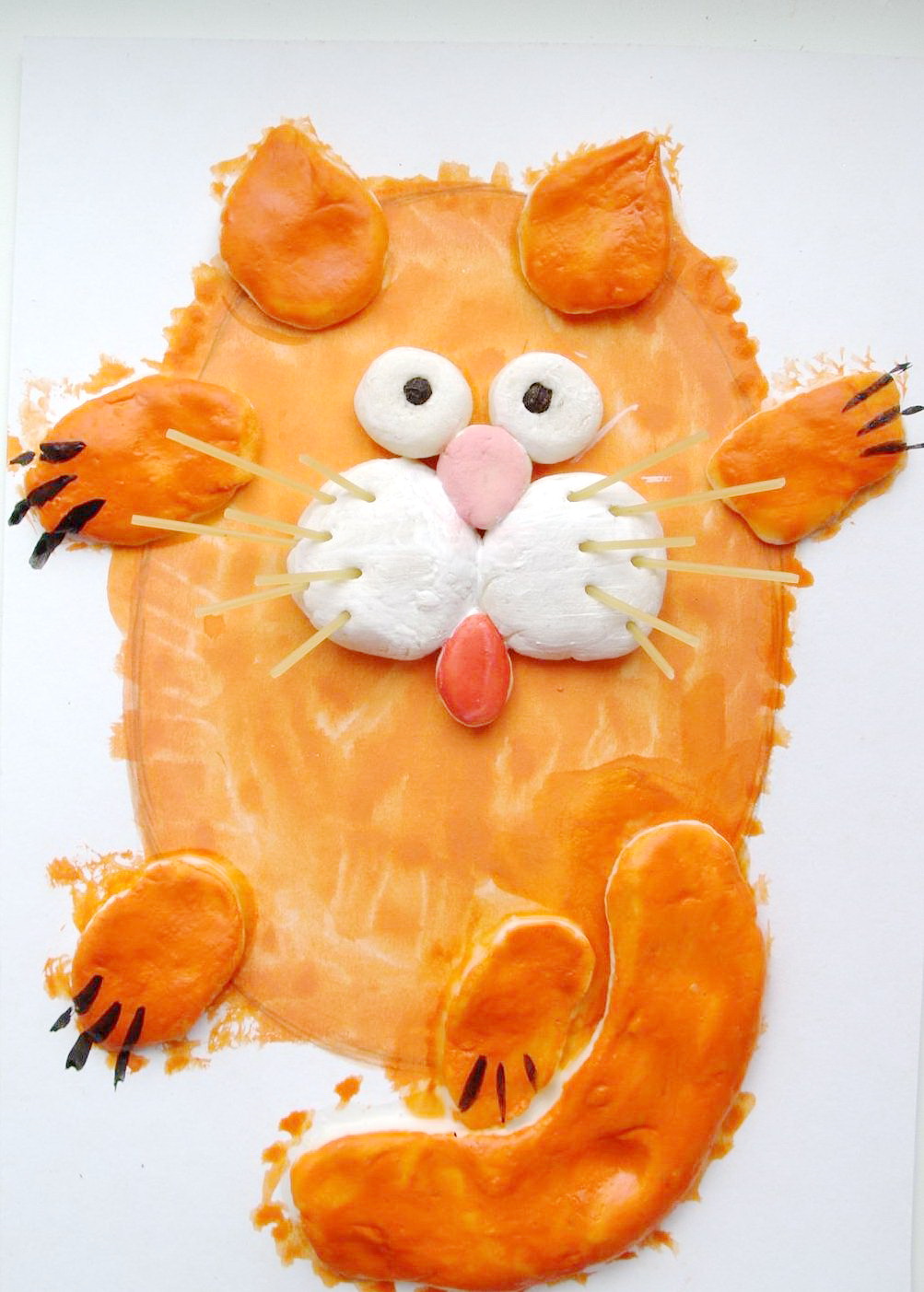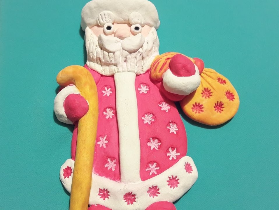 - Mosaico. Precisamos encontrar um belo desenho de papel de Papai Noel, depois cortar uma figura da massa, e depois, separar as partes - canetas, barba, rosto, chapéu e colocá-las no topo. O resultado será algo como uma coloração volumosa, cuja beleza principal será dada com a ajuda das cores.