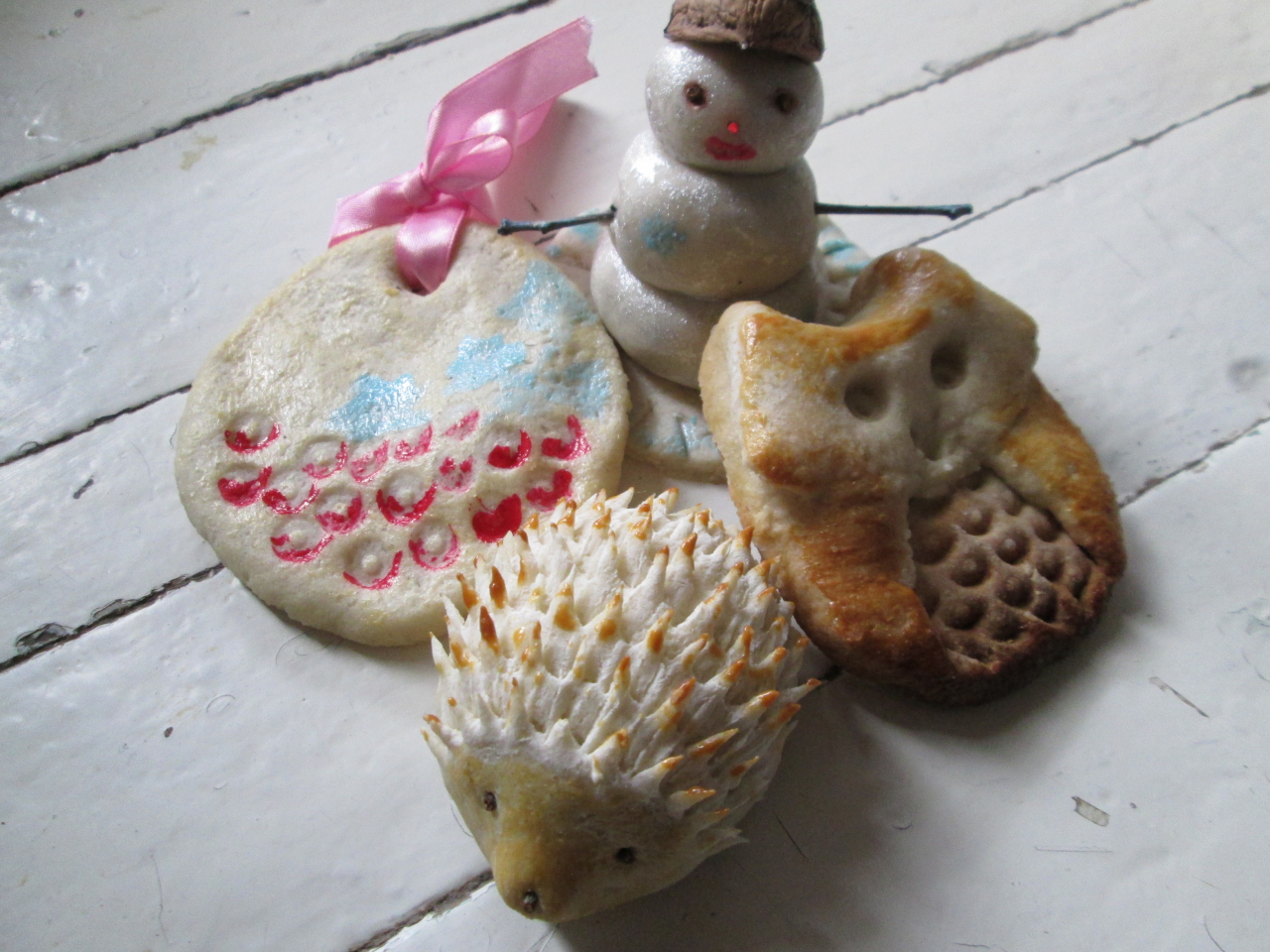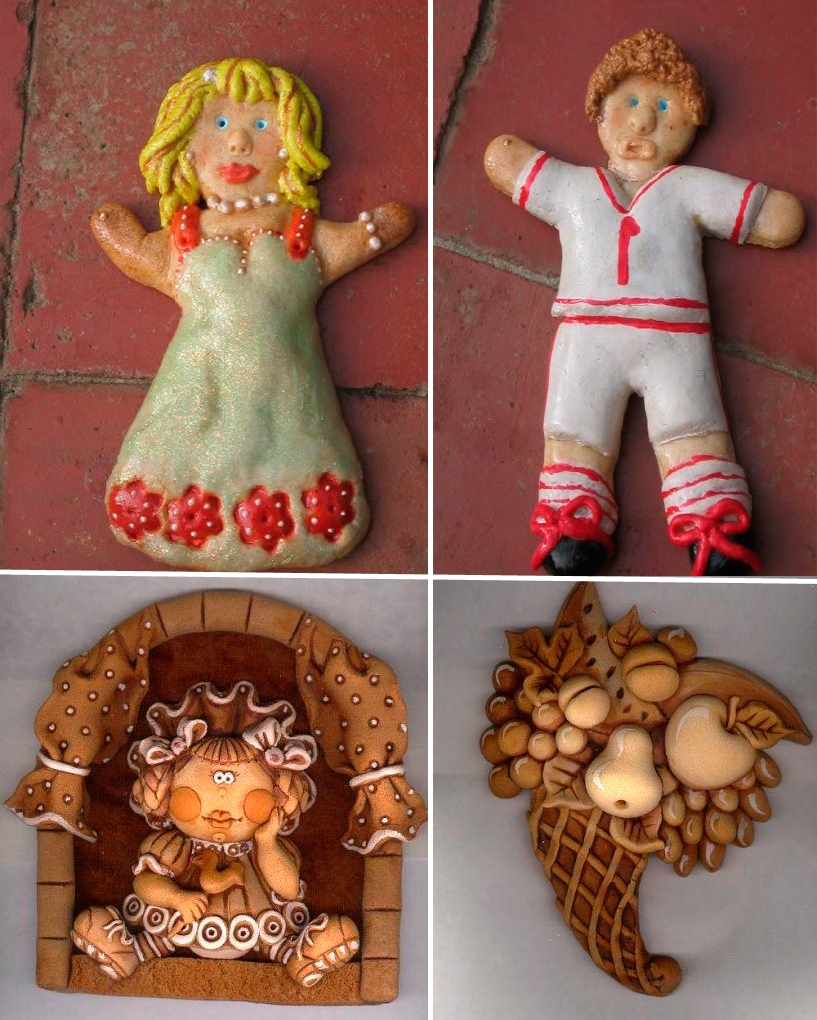 A maneira mais fácil de fazer uma decoração a partir da massa de sal é pegar os cookies e usá-los. O algoritmo é simples: