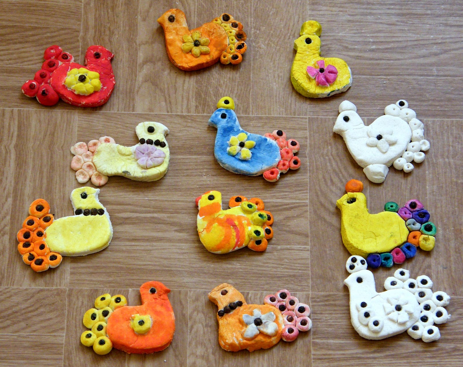 - faça um buraco em cada embarcação usando uma vara afiada e asse os brinquedos lisos resultantes no forno;