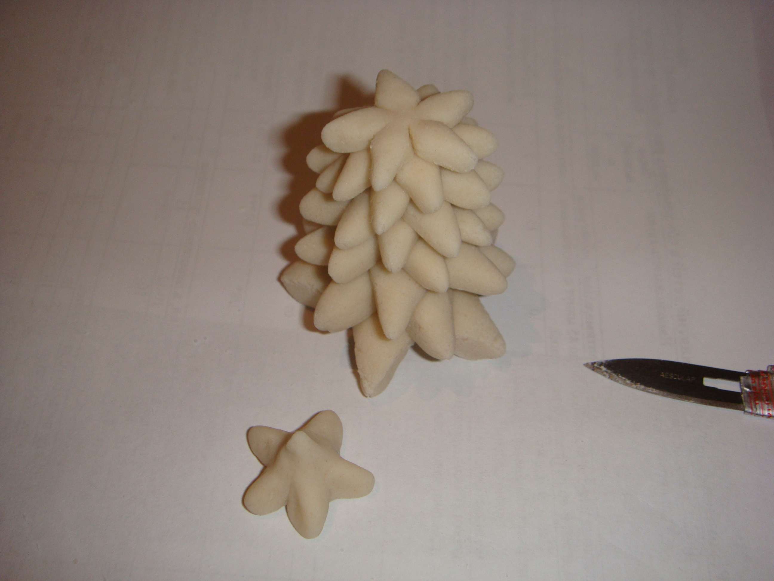 - Faça uma pirâmide de árvores de Natal. Para fazer isso, faça figuras estúpidas e parecidas com estrelas-do-mar com massa e faça-as uma na outra. Tal exercício não apenas ajudará a criança a desenvolver habilidades motoras finas, mas também a praticar na determinação do tamanho dos objetos - uma habilidade muito relevante para a idade de dois ou três anos.
