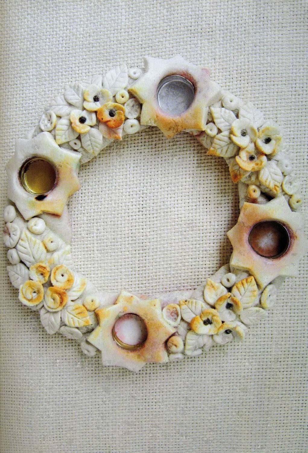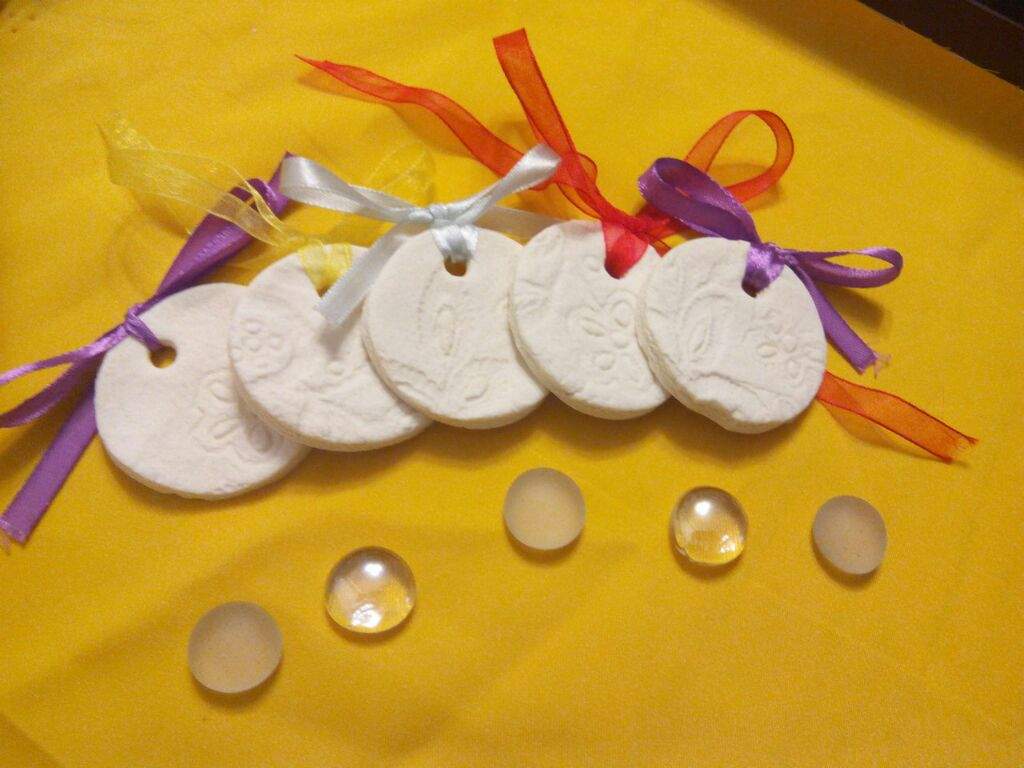 - Faça uma figura de malha. Para fazer isso, faça duas longas salsichas da massa e enrole-as em um flagelo. Cortar o flagelo em partes iguais e colocá-lo em uma folha de massa laminada. Quando o molde é usado para cortar, a figura resultante aparecerá tricotada. Quando secar, você pode colar o botão na parte superior para maior similaridade.