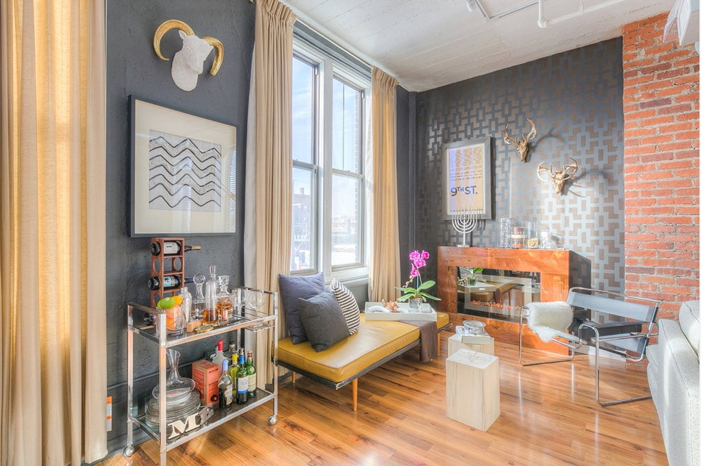 - usar papel de parede com silk-screen geométrica para uma das paredes, eles são especialmente adequados para a decoração do hall, o corredor, cozinhas;