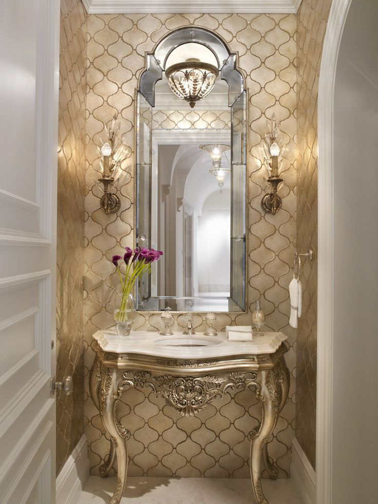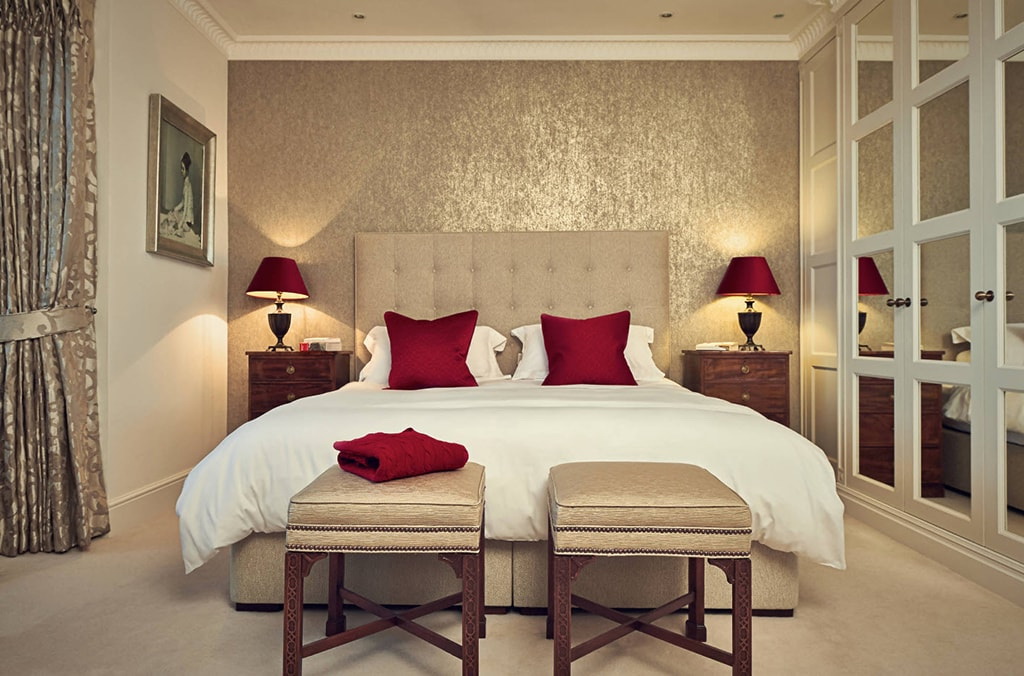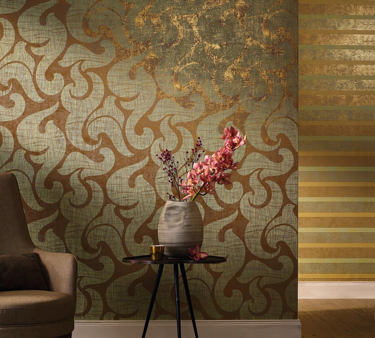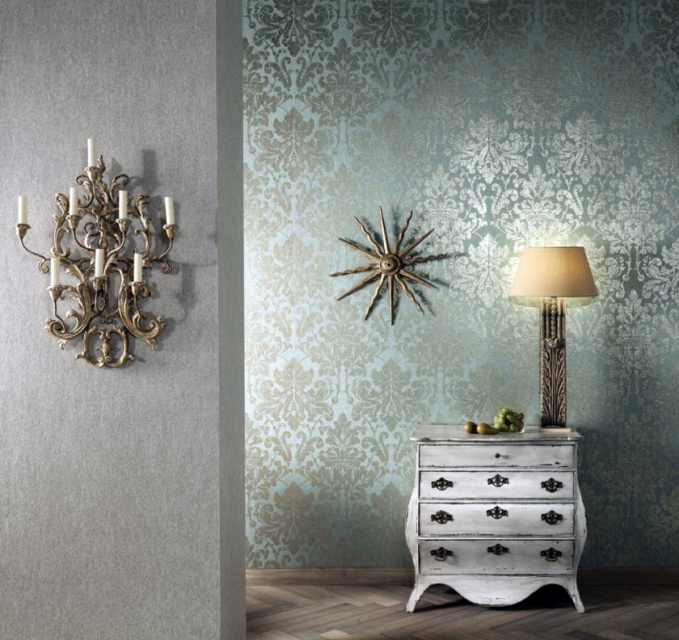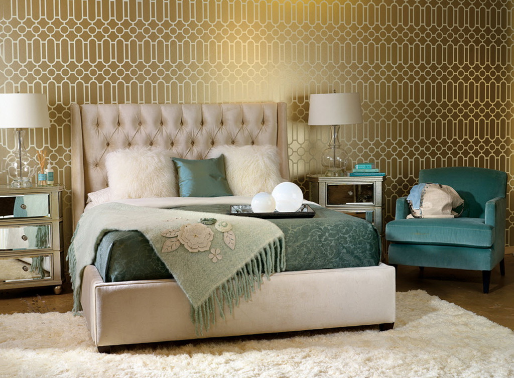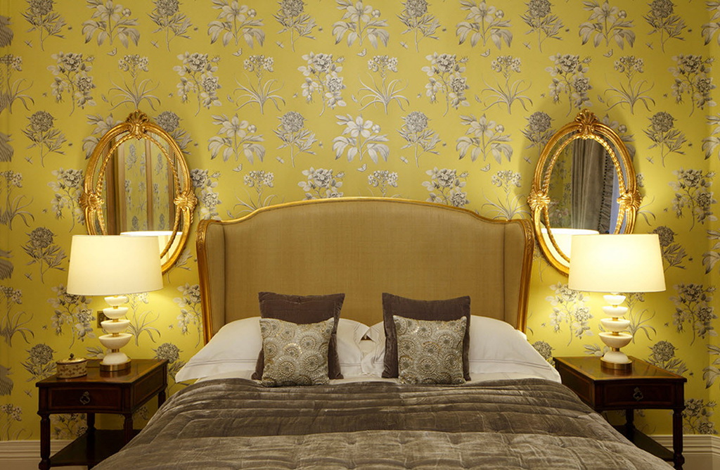 A espessura, densidade do papel de parede selecionado não importa muito, um papel fundamental no design desta parte da casa é desempenhado pela estética, beleza. A serigrafia é agradável ao toque, combinada com roupa de cama de cetim e seda. O brilho característico é perceptível na fraca luz noturna da lâmpada.