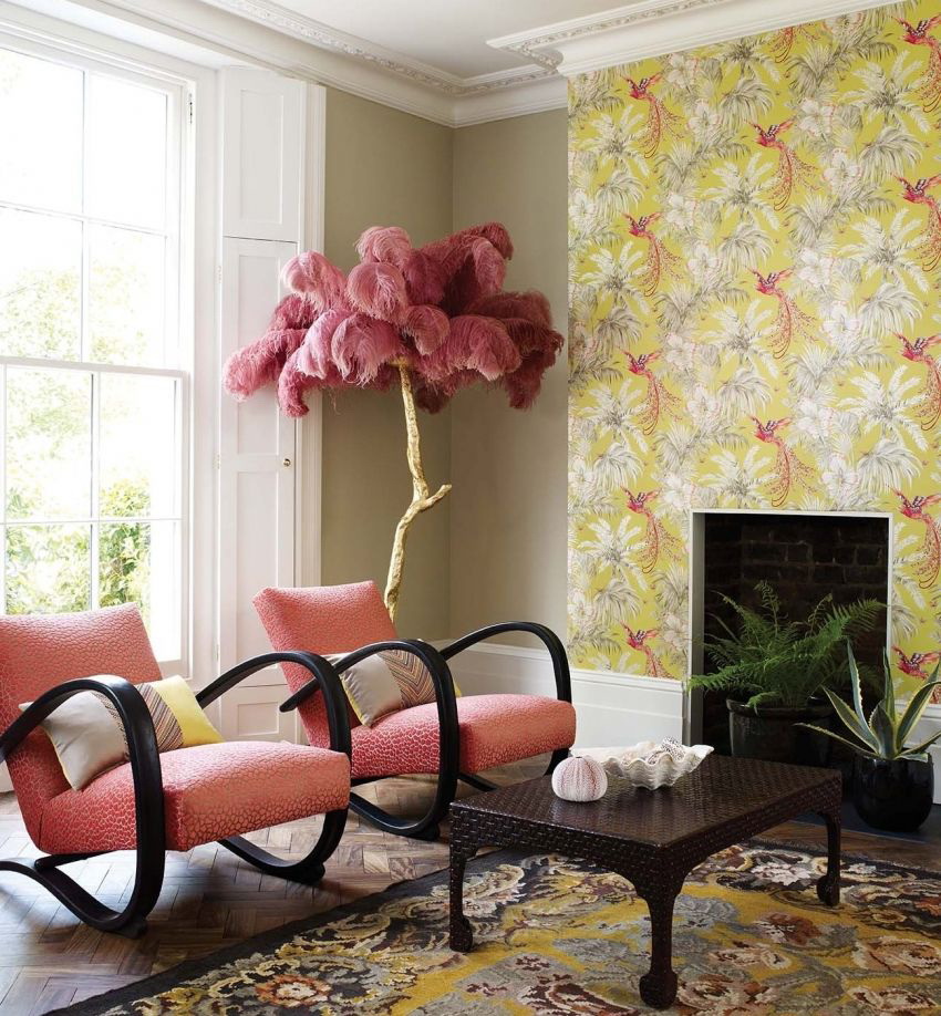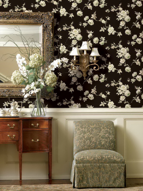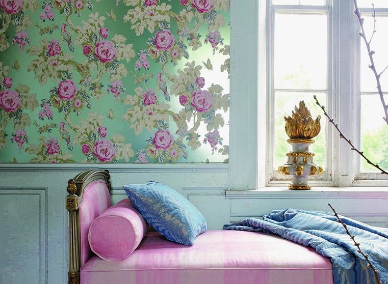 A estampa floral nas paredes tem sido procurada há muito tempo, permanecendo na tendência de 2018-2019. O rico material de triagem de seda é um sinal de luxo, pois a rosa, a “rainha das flores”, é considerada uma opção particularmente adequada. Qualquer sala decorada desta forma ficará tenra e elegante.