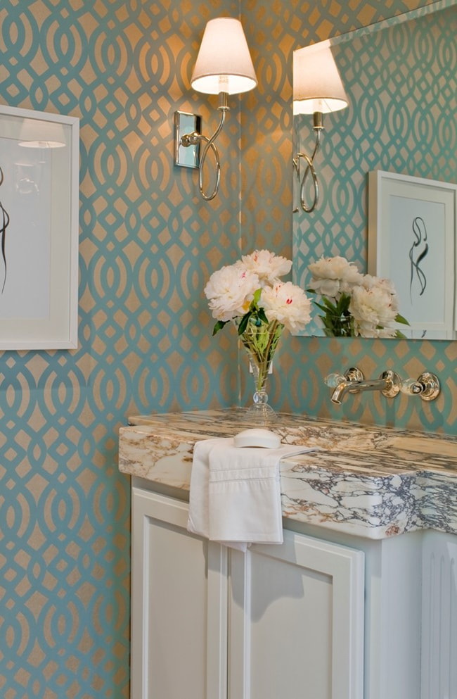 Detalhes geométricos raramente são raramente usados em rolos de silk-screen, no entanto, os designers asseguram que tal idéia é original. É o oposto da impressão floral delicada e generalizada. Se você ainda não estiver pronto para experimentar, experimente uma destas ideias:
