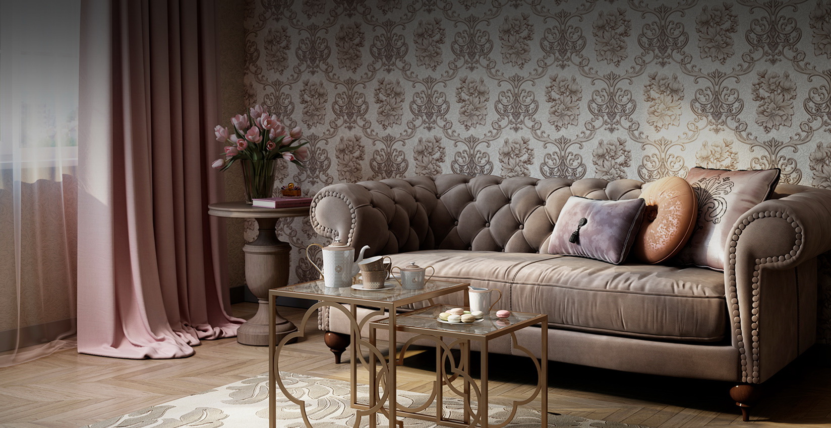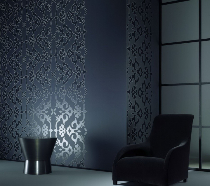 O material acabado se assemelha a seda, tem um brilho que dura muito tempo. As cores são foscas e brilhantes, sua escolha depende do design da sala. Entre os padrões estão padrões florais comuns, abstrações e linhas também estão em demanda.