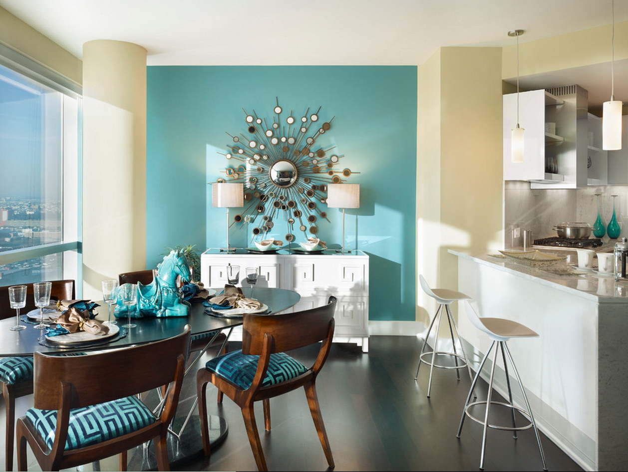 Por exemplo, a percepção de uma sala retangular alongada mudará se as extremidades estiverem rebocadas com telas escuras ou brilhantes, e para as paredes laterais usarem o acabamento em cores pastel.