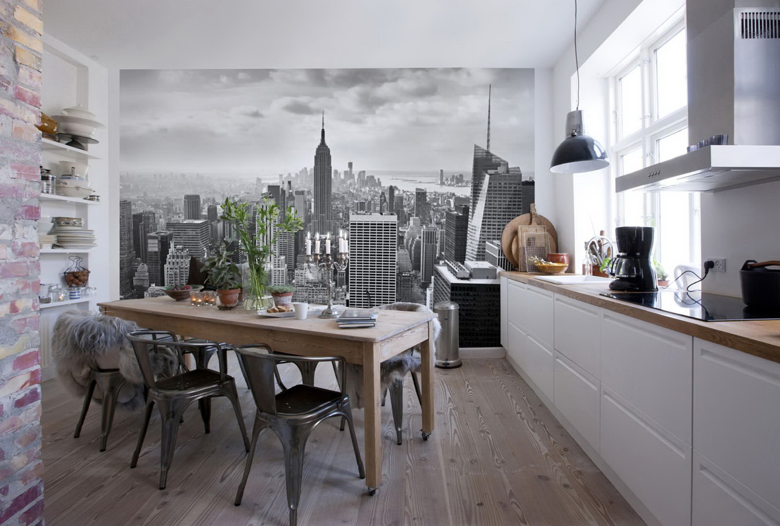 Portanto, escolhendo papel de parede para a cozinha, você precisa prestar atenção não só à decoração, mas também às propriedades das pinturas.